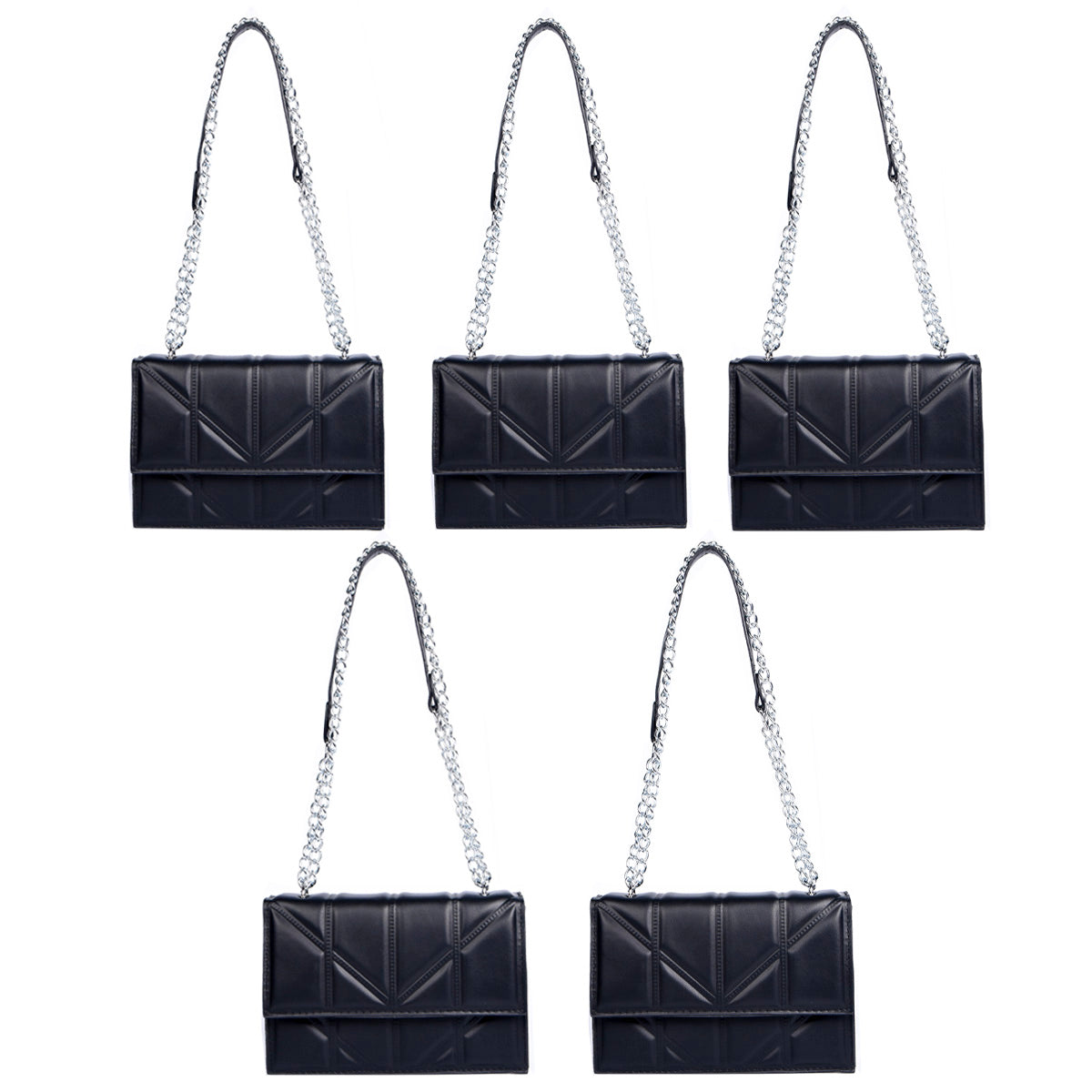 Contiene cinco mini bags de un mismo modelo en color negro.