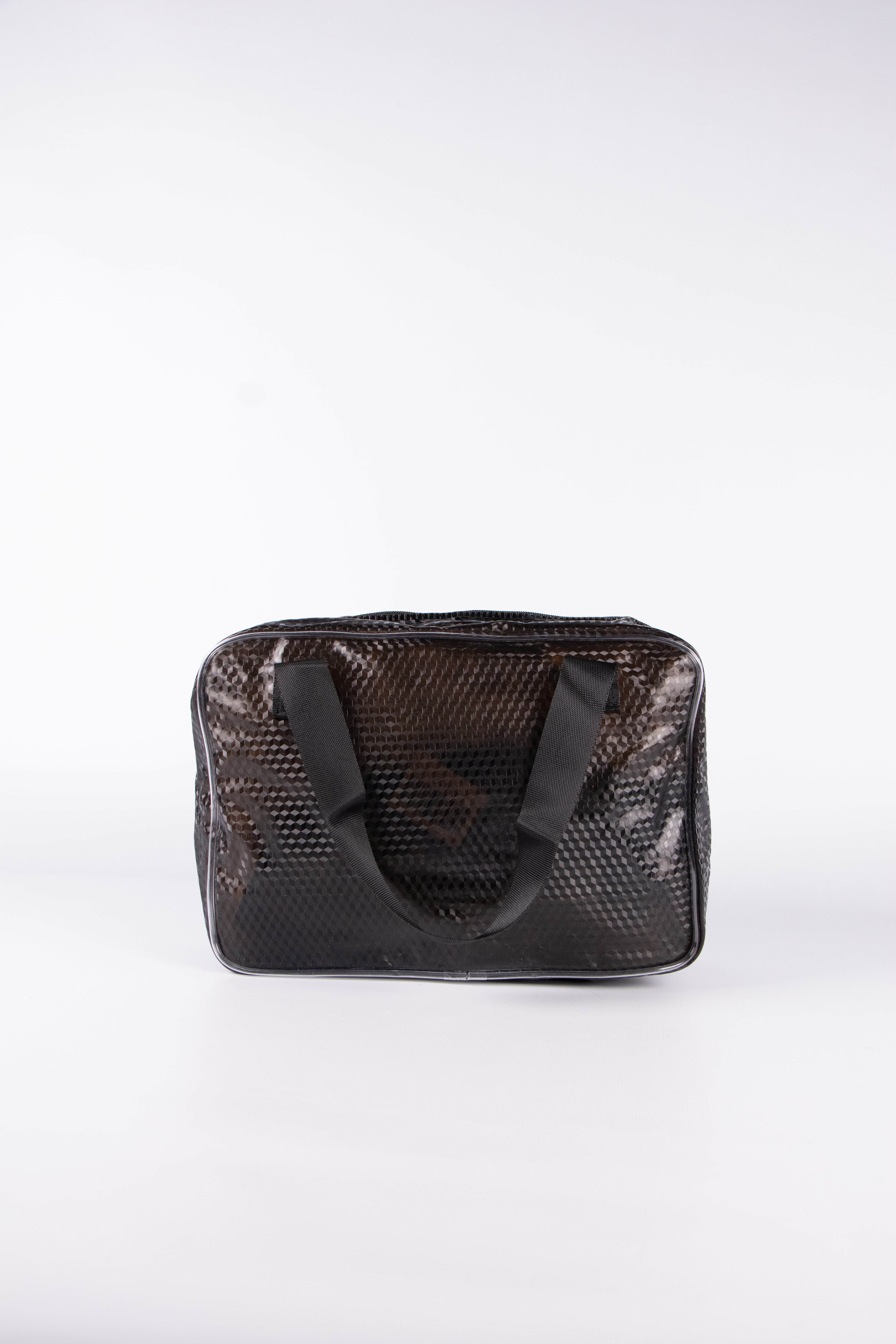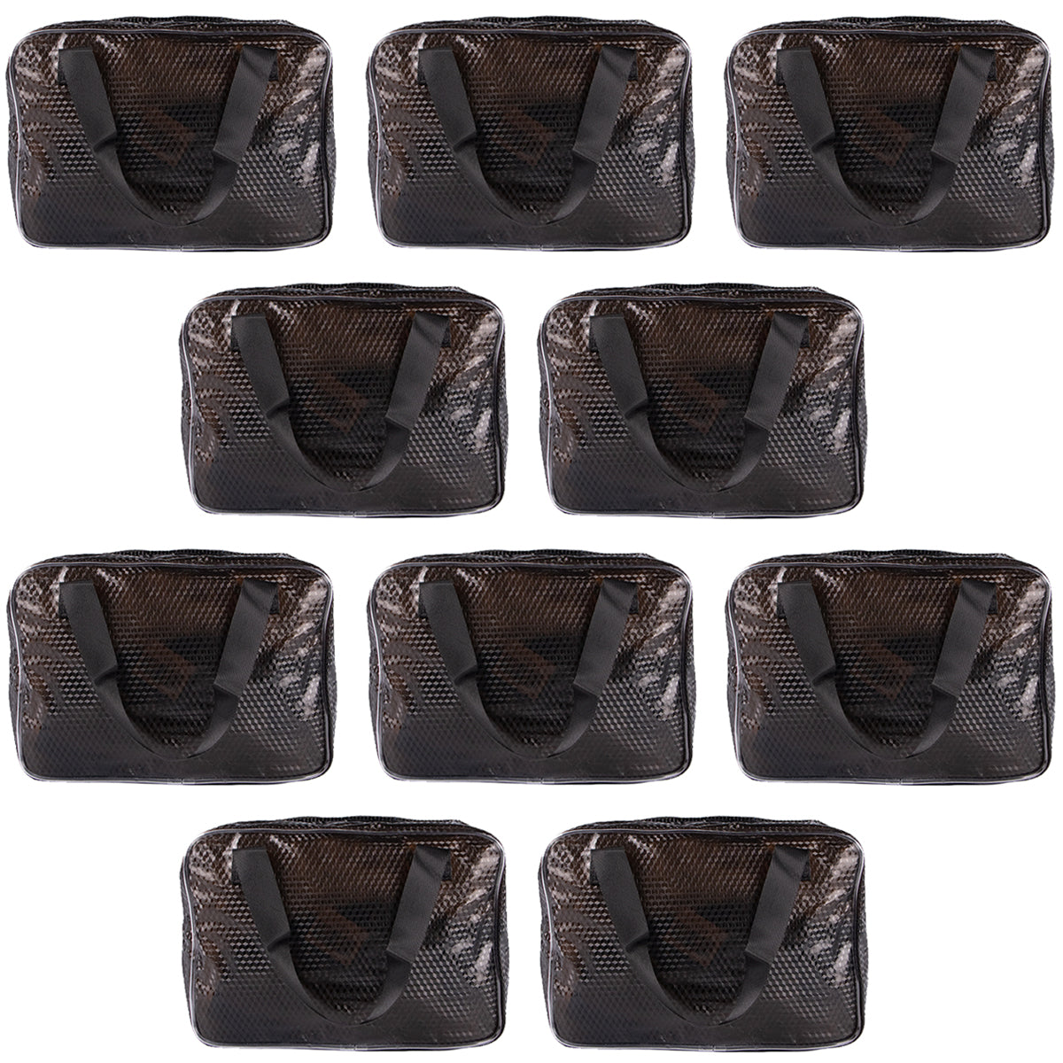Contiene diez porta cosméticos de un mismo modelo en color negro.