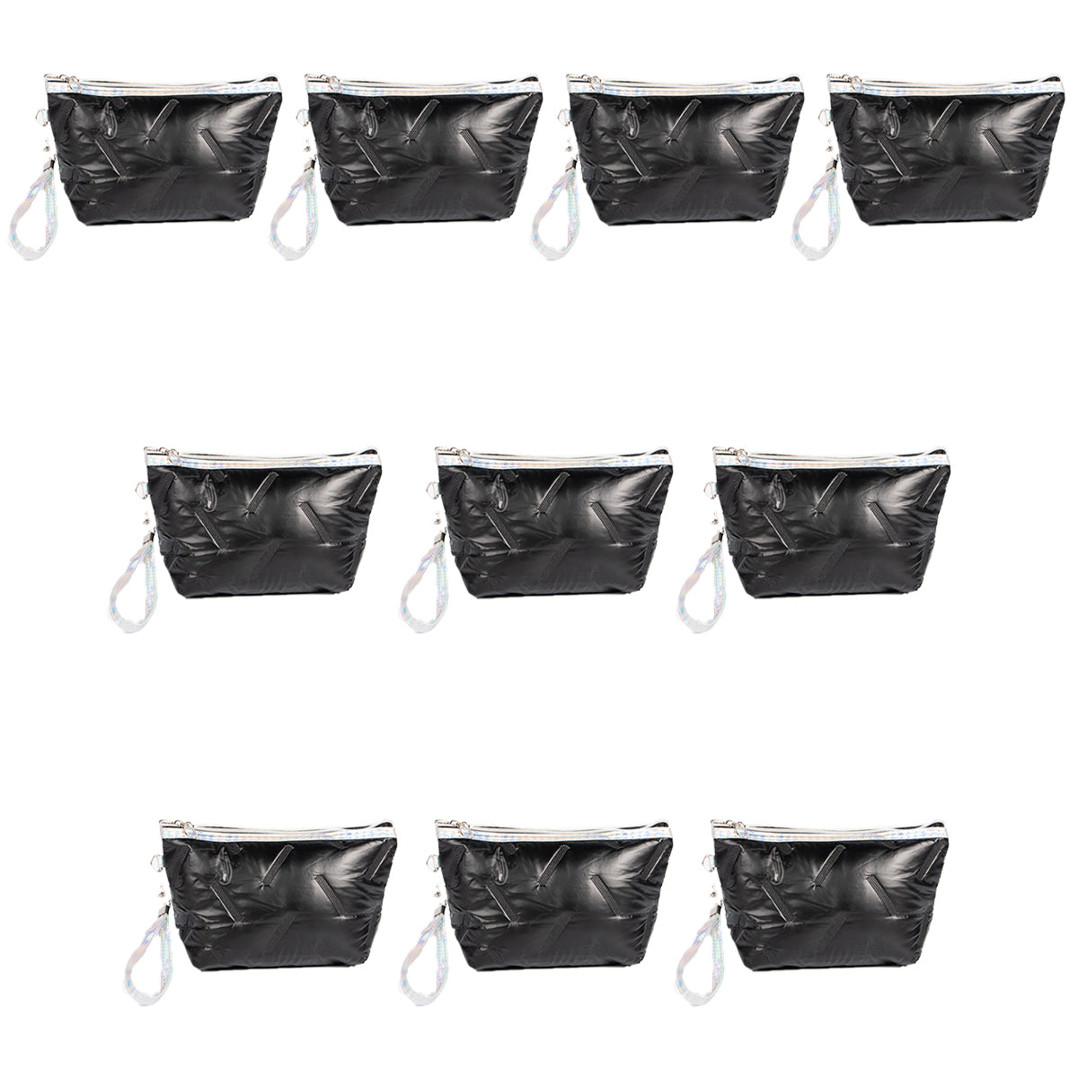 Contiene diez portacosméticos de un mismo modelo en color negro.
