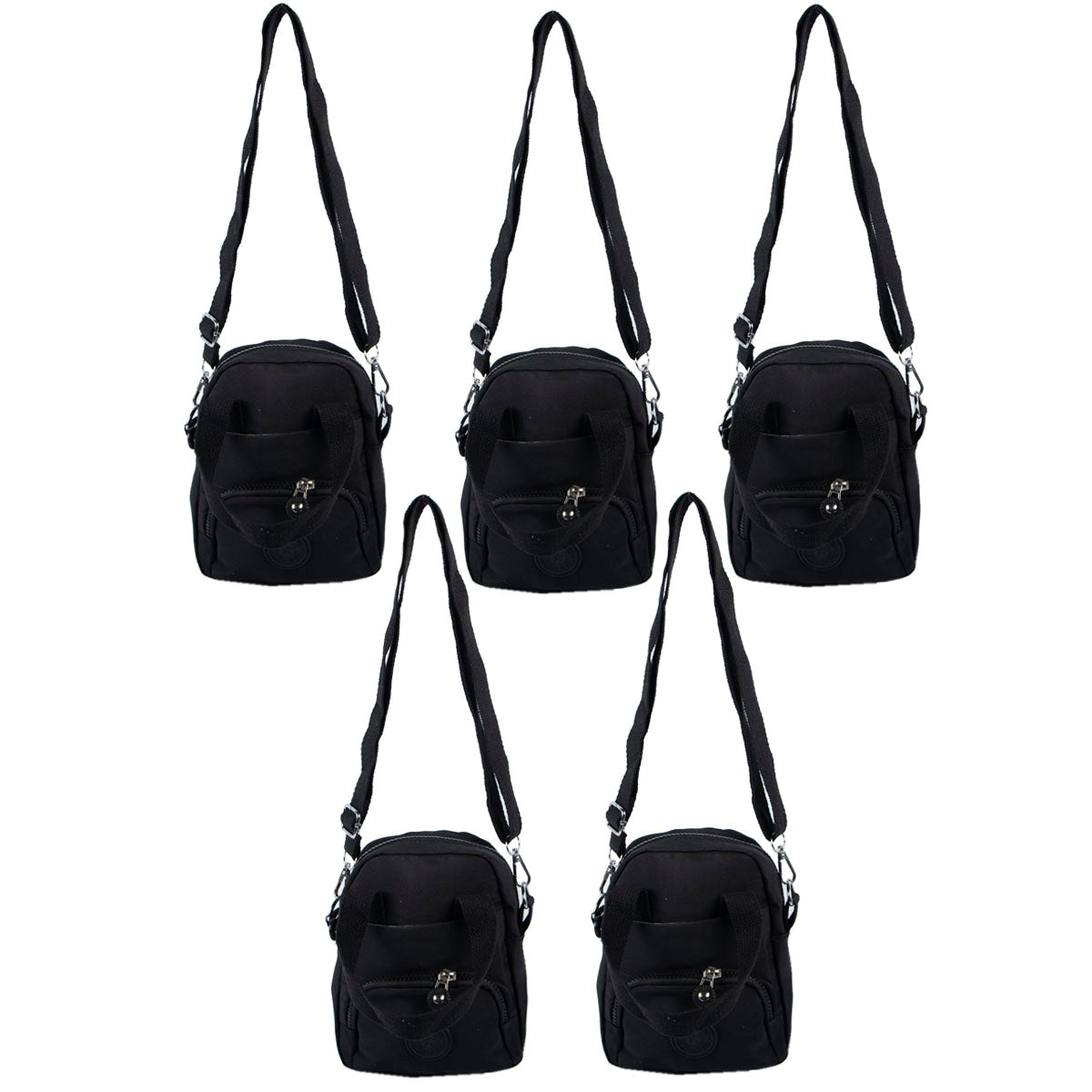 Contiene cinco bandoleras tela de avión de un mismo modelo en color negro.