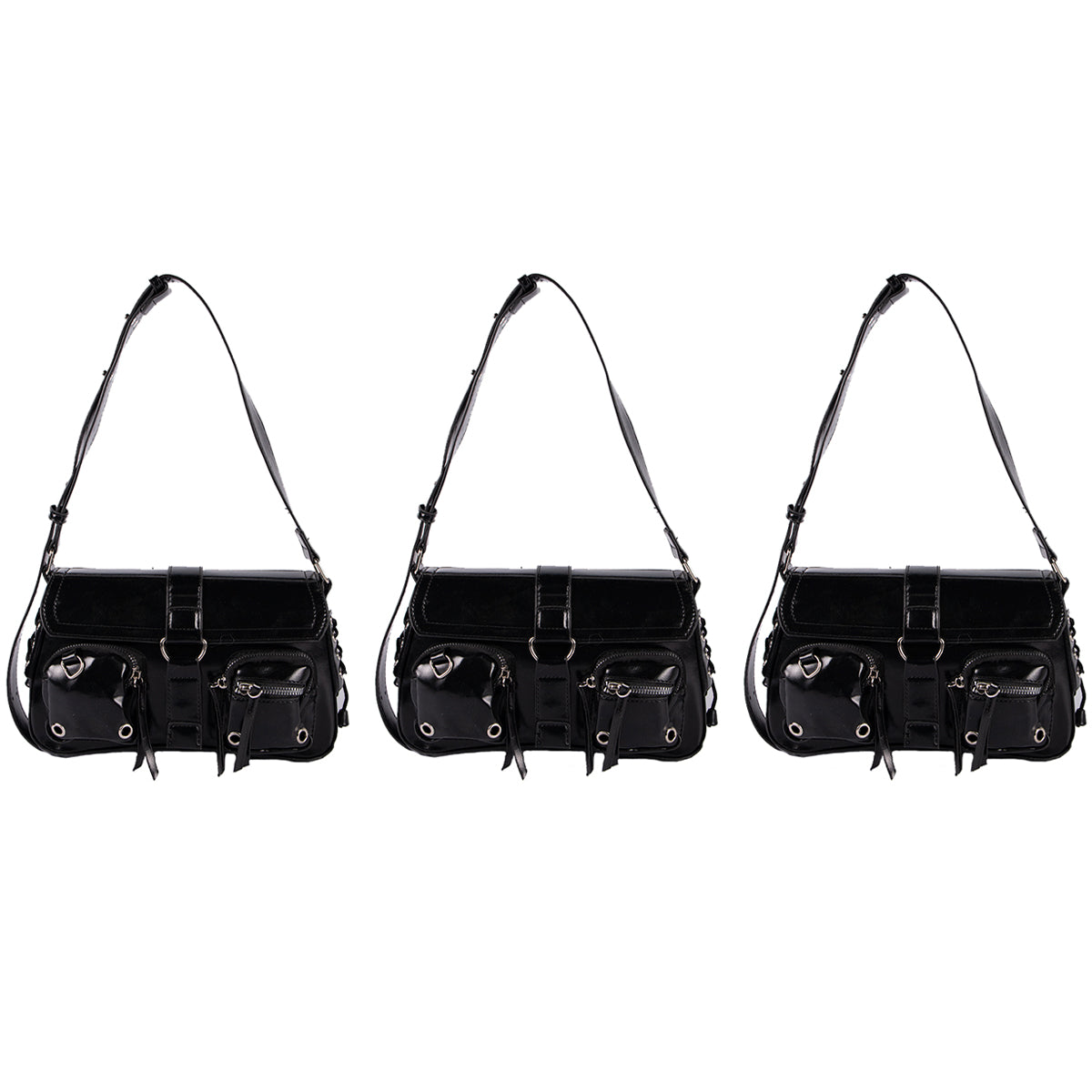 Contiene tres mini bags de un mismo modelo en color negro.