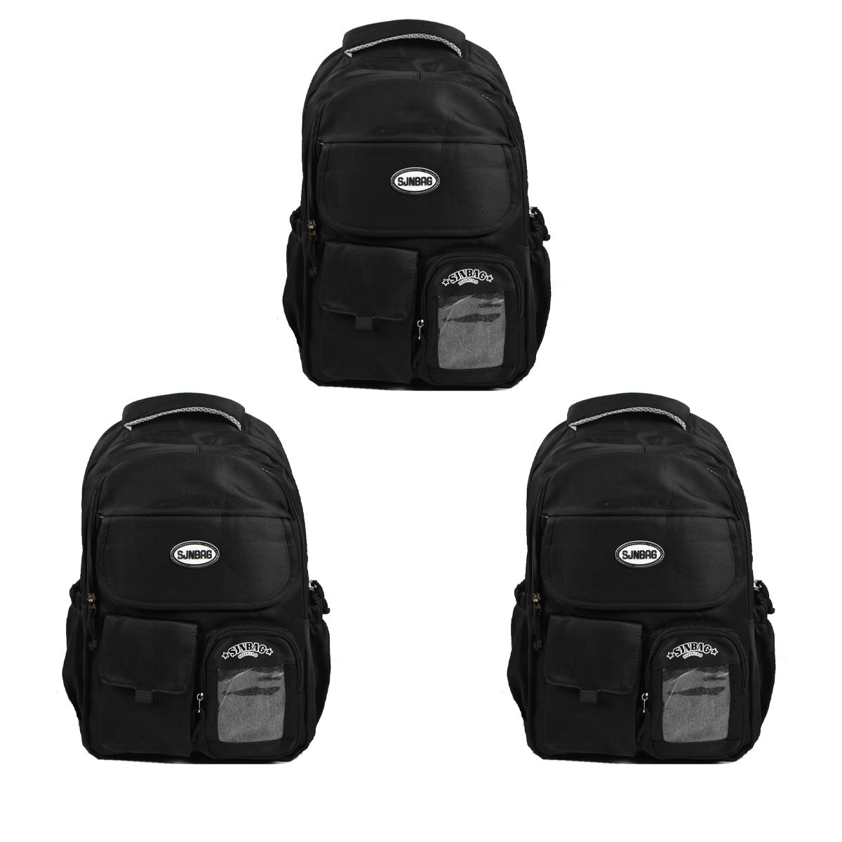 Contiene 3 mochilas de un mismo modelo en color negro.