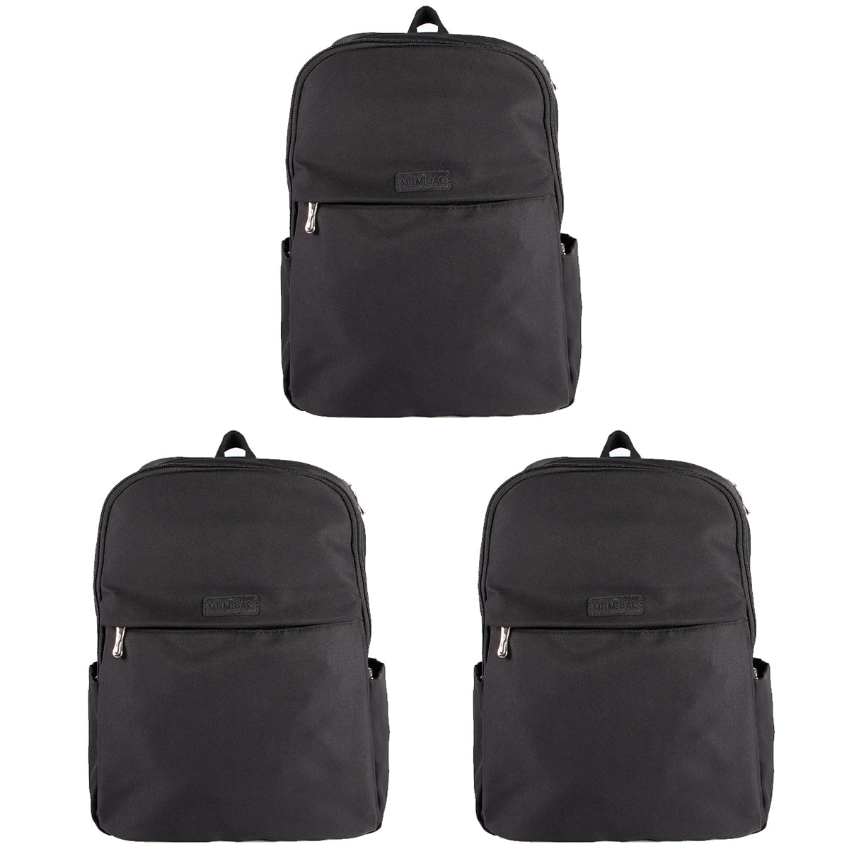 Contiene tres mochilas importadas de un mismo modelo en color negro.
