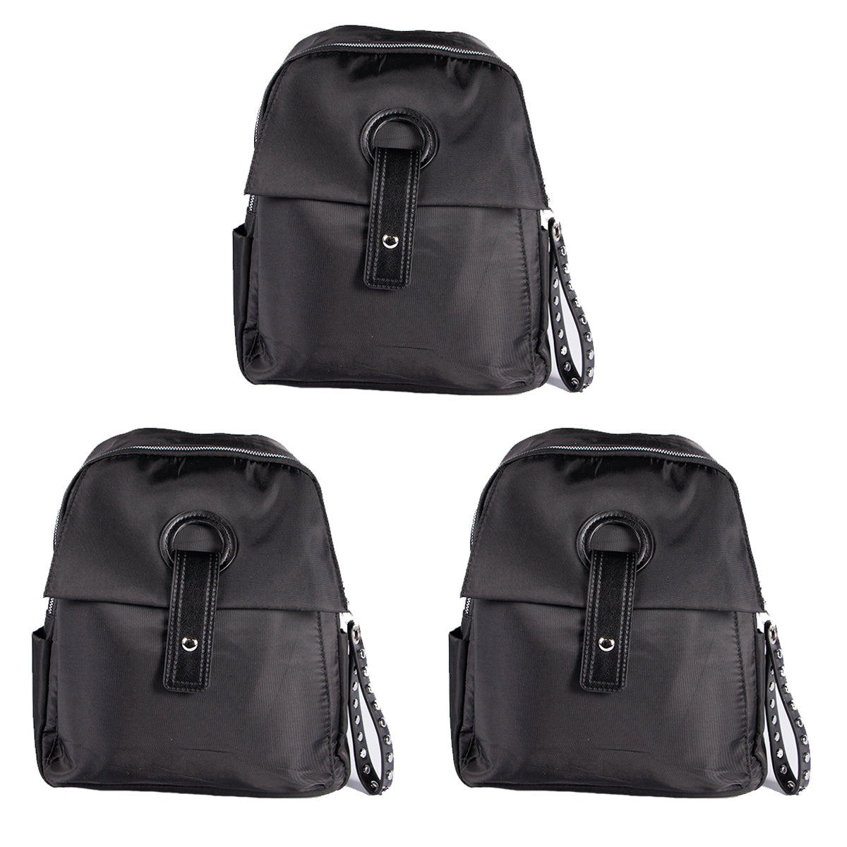 Contiene tres mochilas importadas de un mismo modelo en color negro.