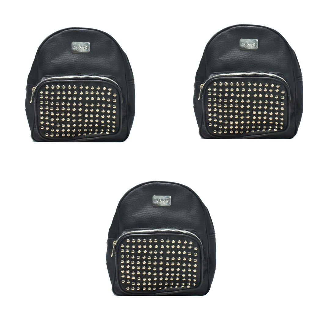 - Contiene: 3 mochilas nacionales en negro, con tachas al frente. Se envía con parche de corazón.