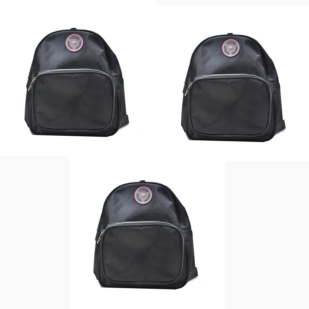 - Contiene: 3 mochilas nacionales en negro de tela de avión, con logo de goma.