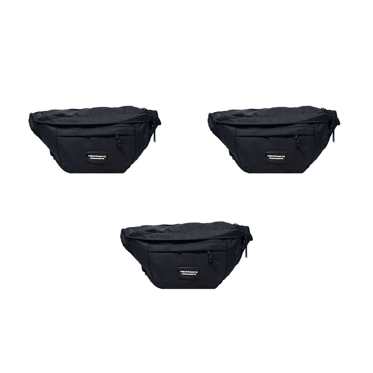 Contiene tres riñoneras chicas de un mismo modelo en color negro.