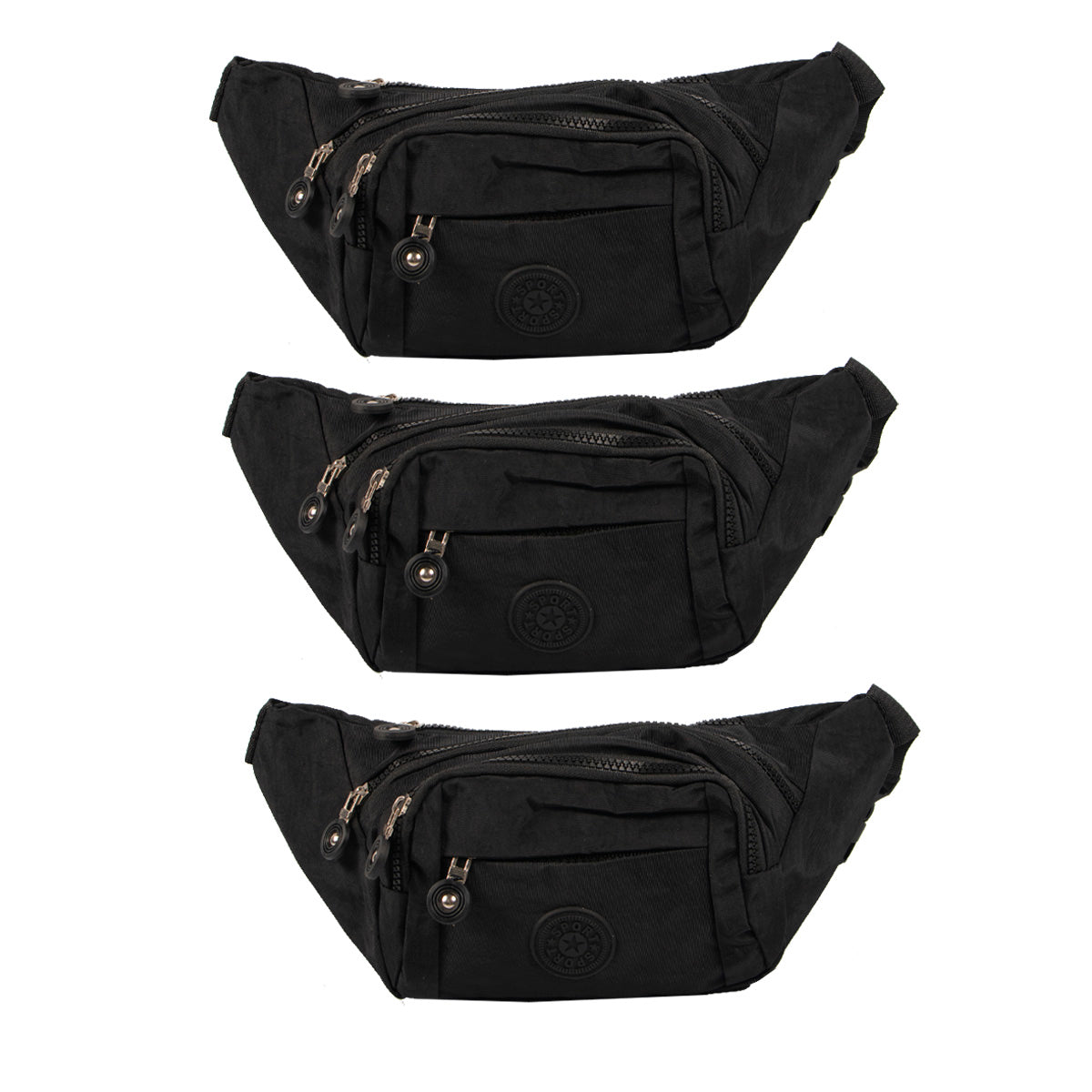 Contiene 3 riñoneras de un mismo modelo en color negro.
