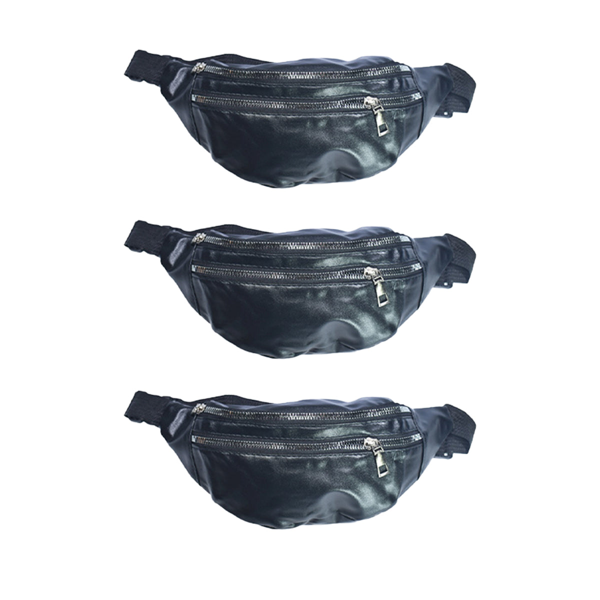Contiene tres riñoneras de eco cuero en un mismo modelo en color negro