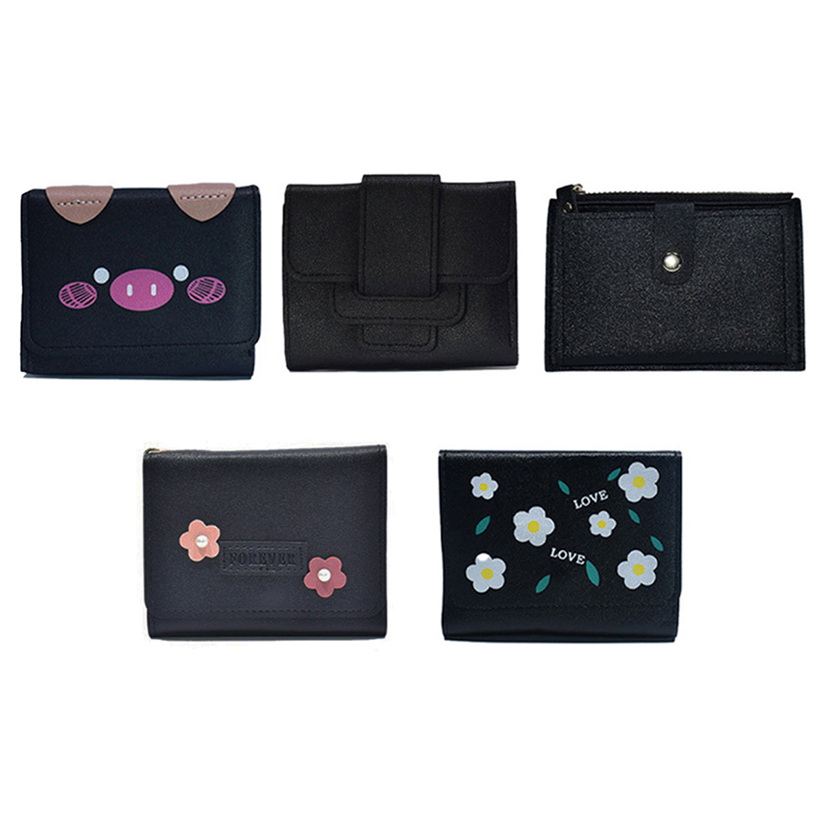 Contiene cinco billeteras pocket de distintos modelos en color negro.
