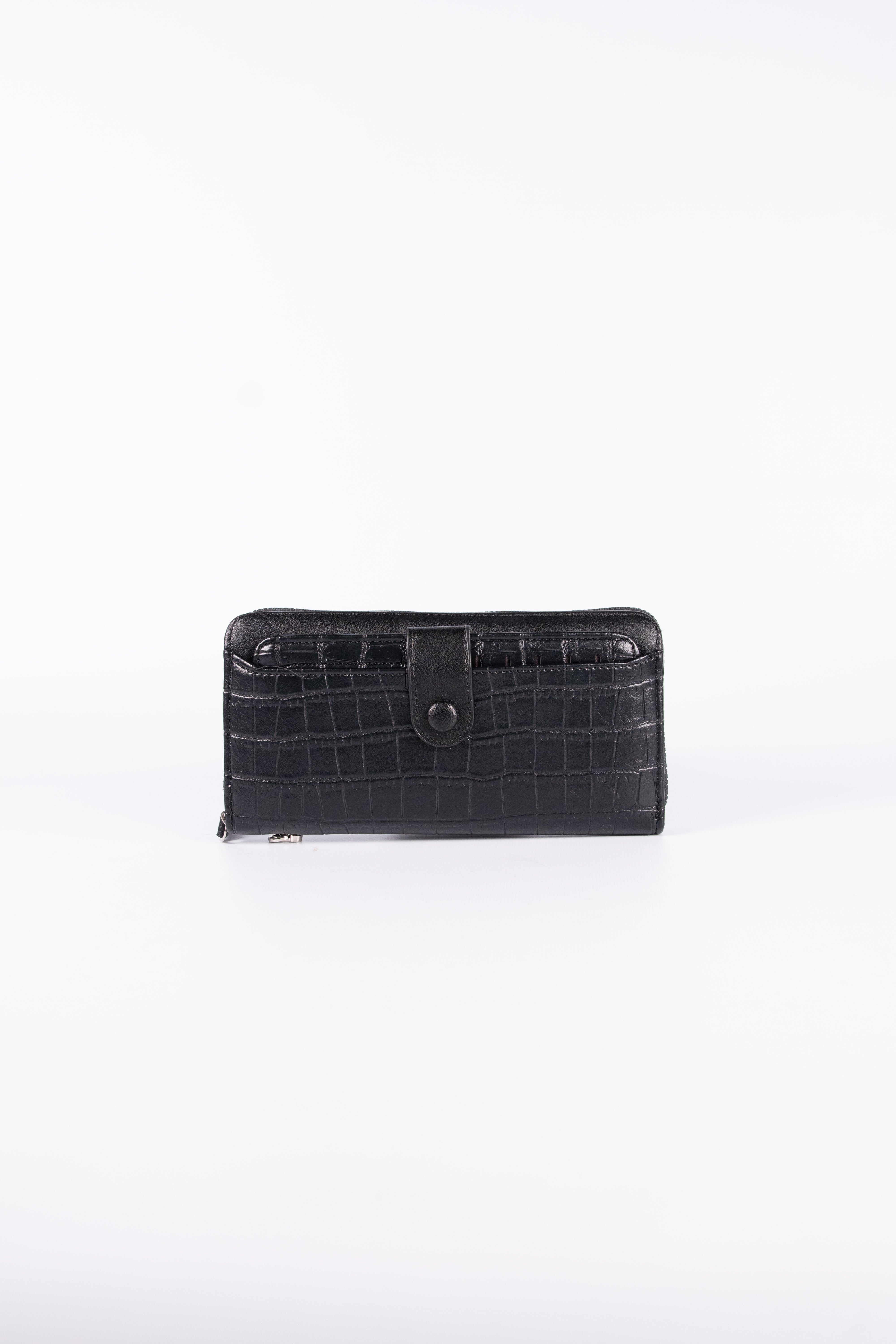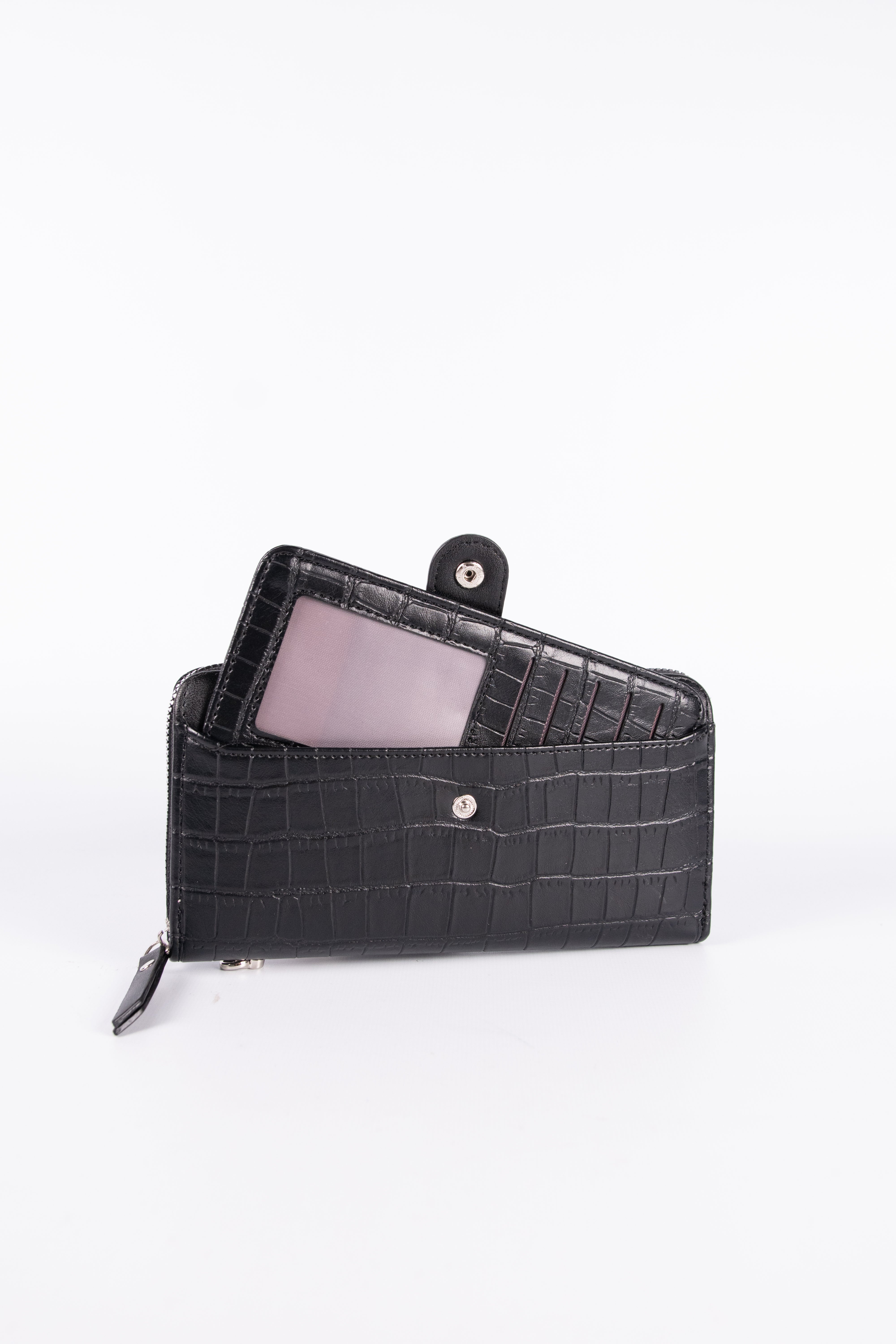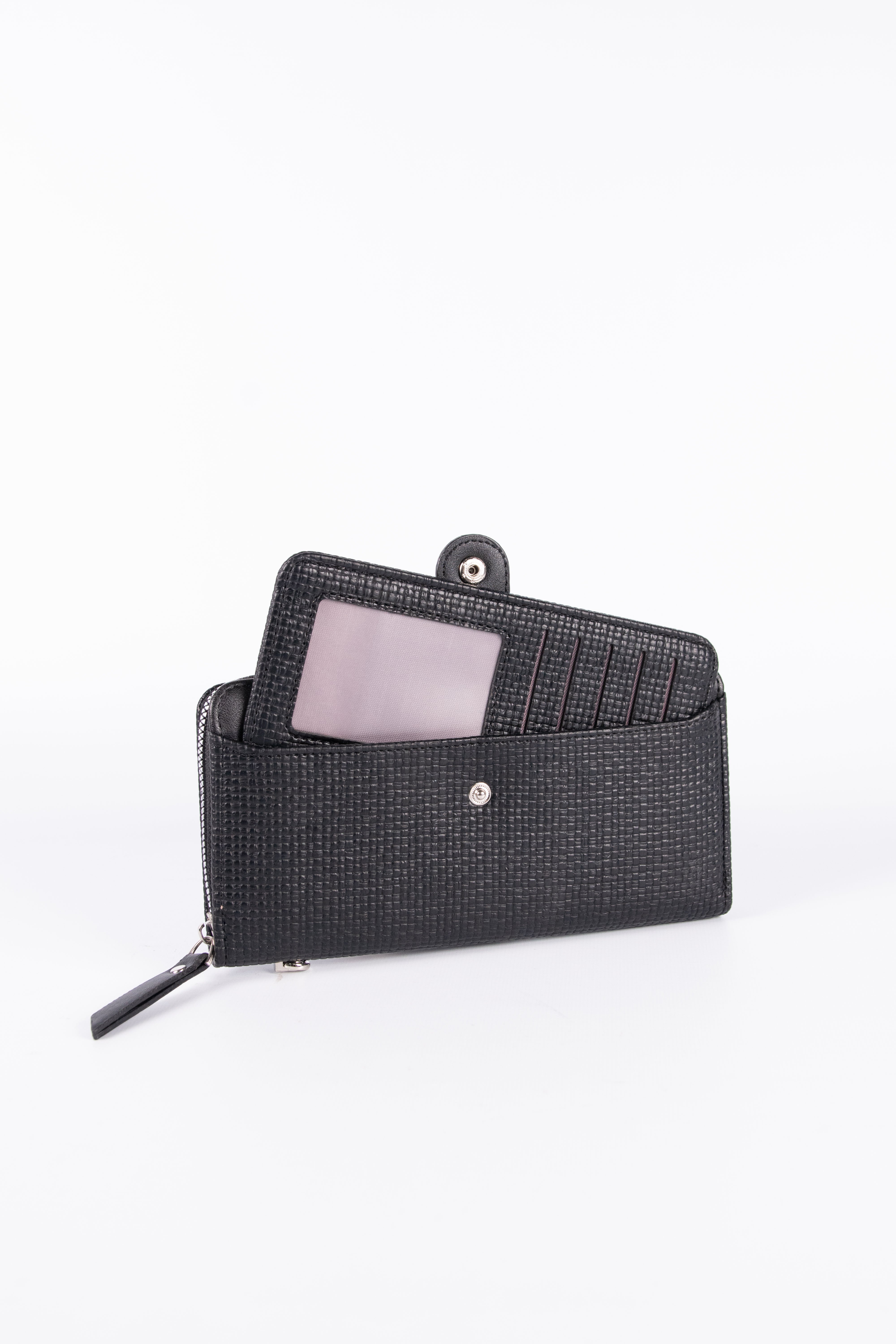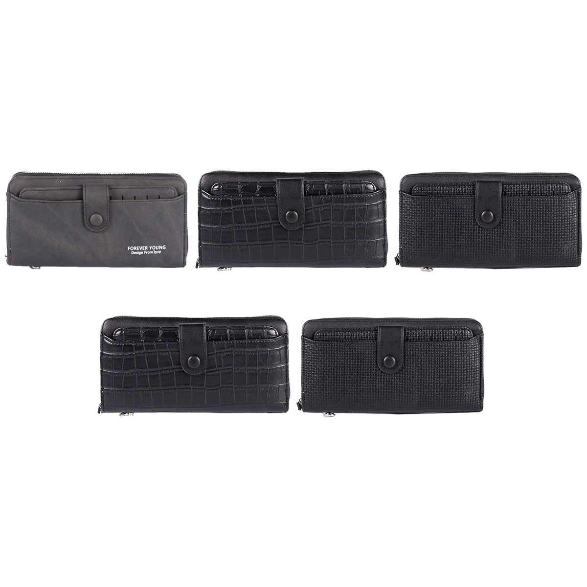 Contiene cinco billeteras de diferentes modelos en color negro.