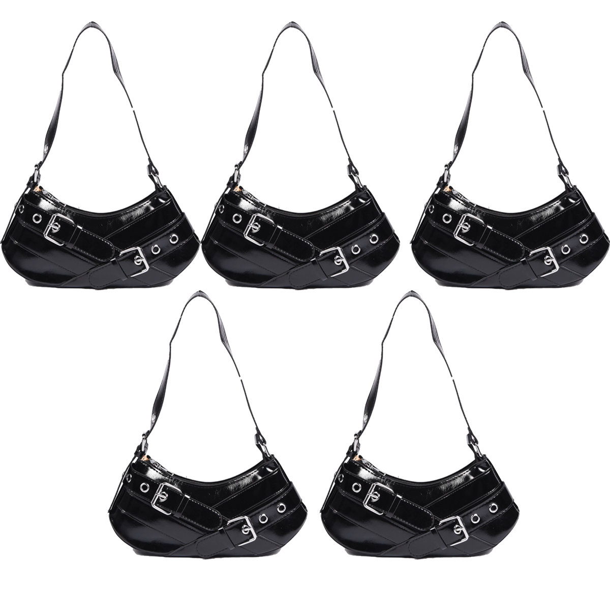 Contiene cinco mini bags de un mismo modelo en color negro.