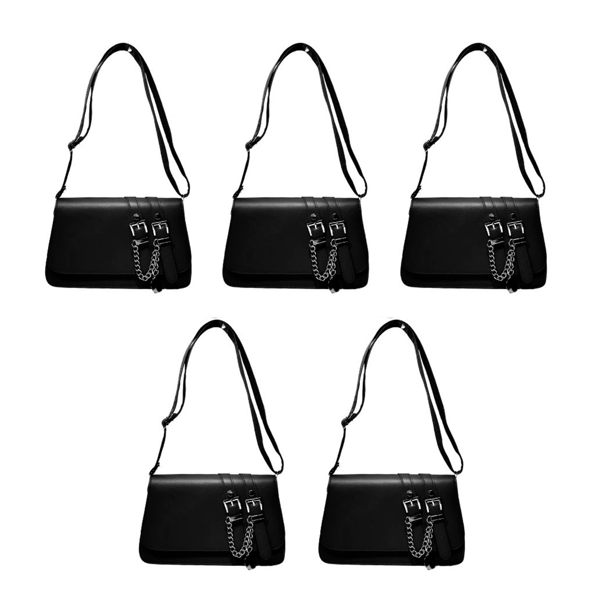 Contiene cinco mini bags de un mismo modelo diferentes colores.