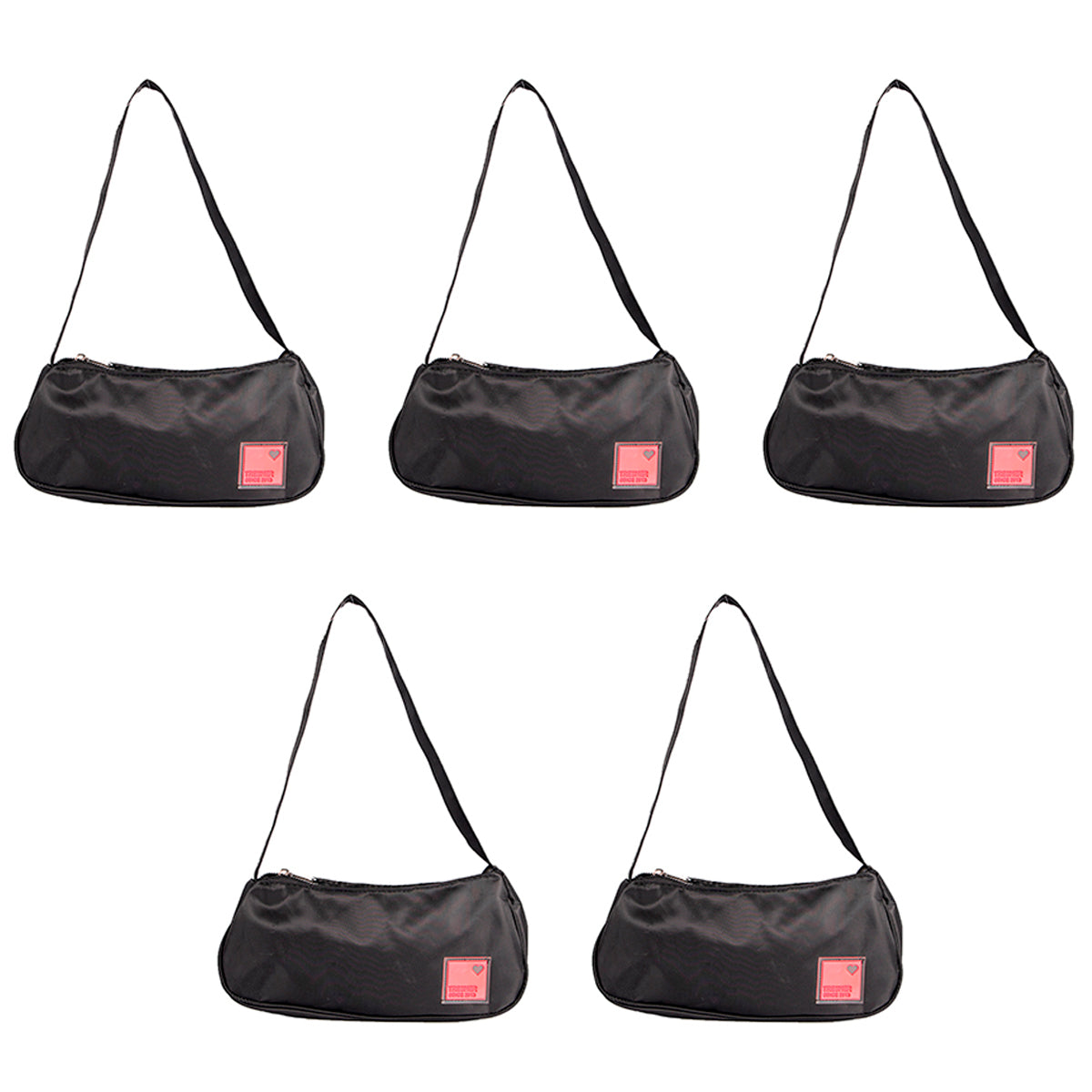 Contiene cinco mini bags nacionales de un mismo modelo en color negro.