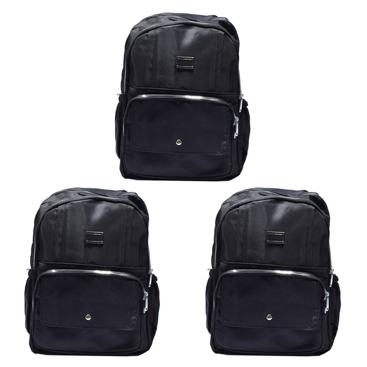 Contiene tres mochilas importadas de un mismo modelo en color negro.