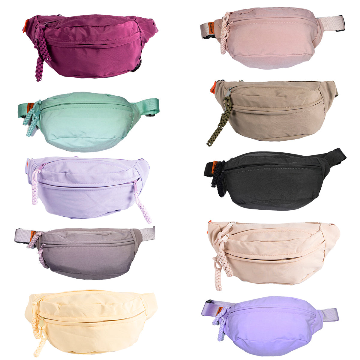 Contiene diez riñoneras tela de avión de un mismo modelo, diferentes colores.