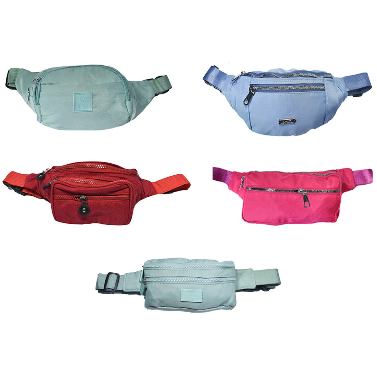 Contiene cinco riñoneras de distintos modelos en diferentes colores.