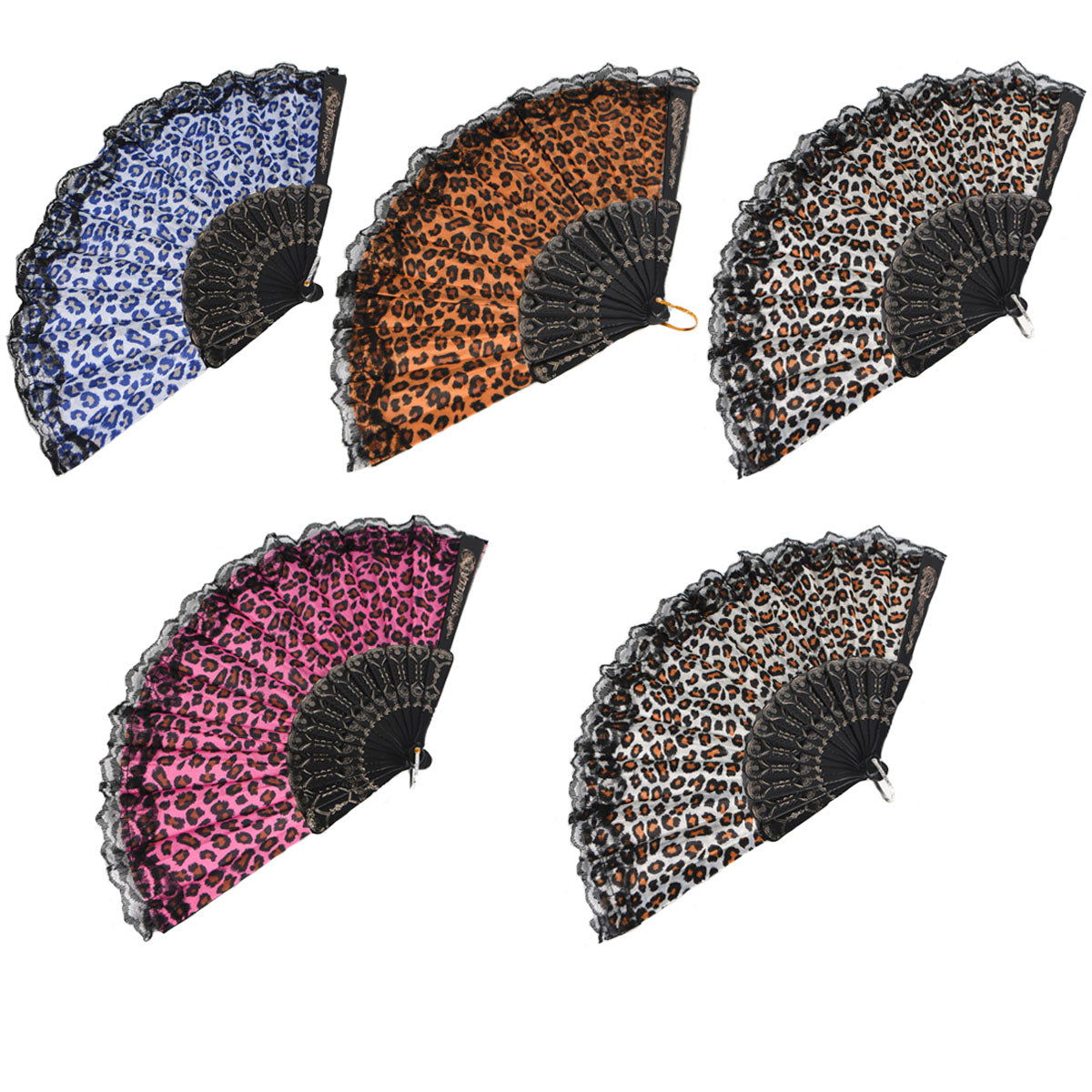 Contiene cinco abanicos de un mismo modelo en diferentes colores.