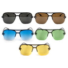 Contiene cinco lentes de sol de un mismo modelo en colores surtidos.
