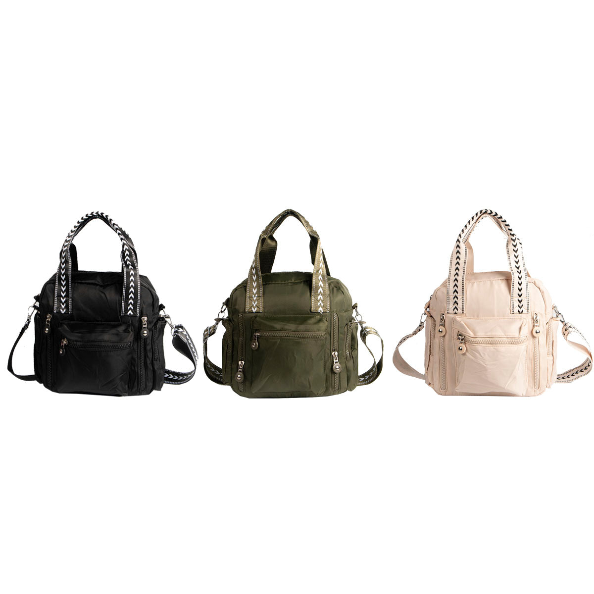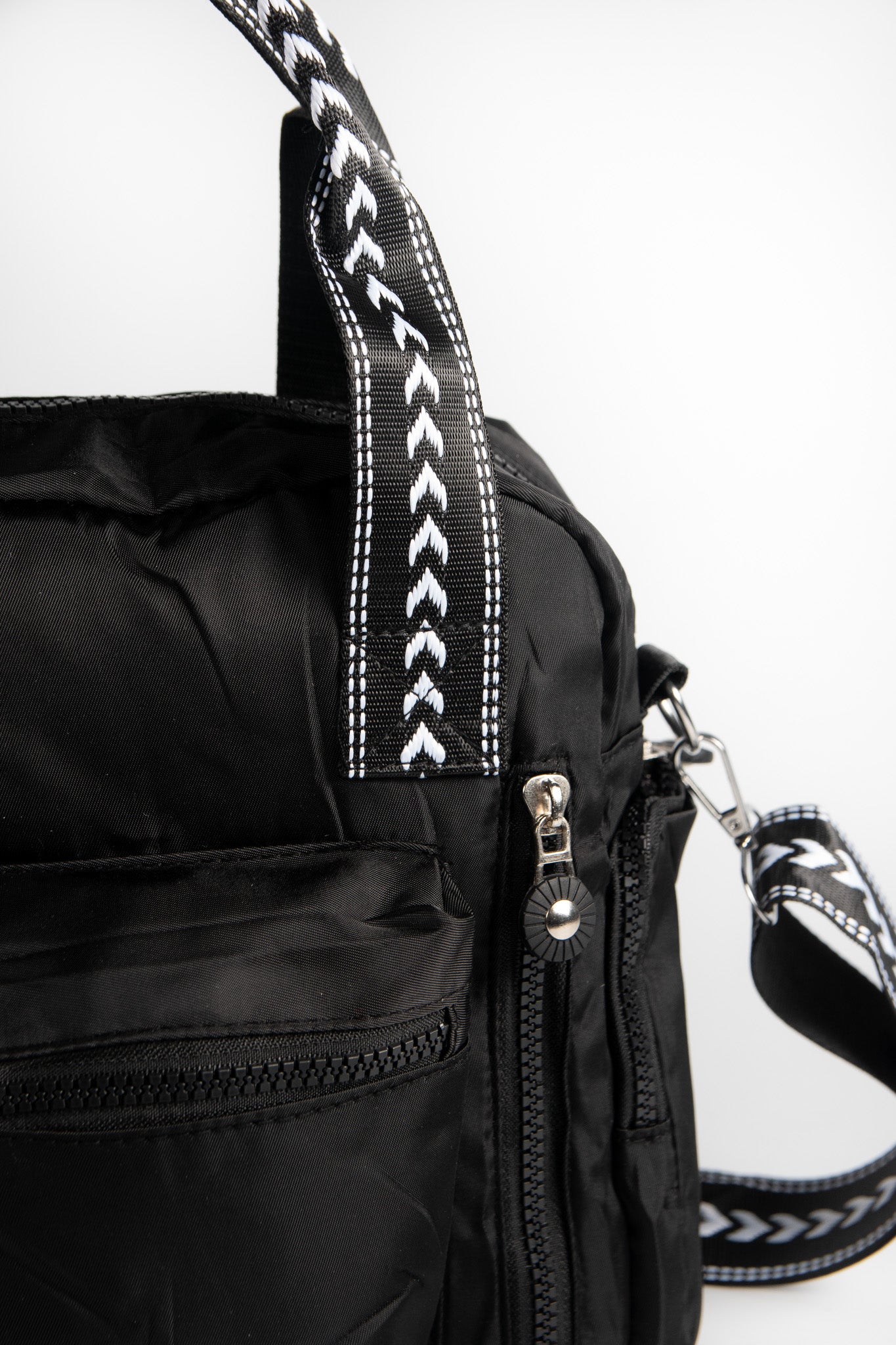 contiene tres bandoleras de un mismo modelo en colores surtidos. SE MANDA NEGRO Y FUCSIA