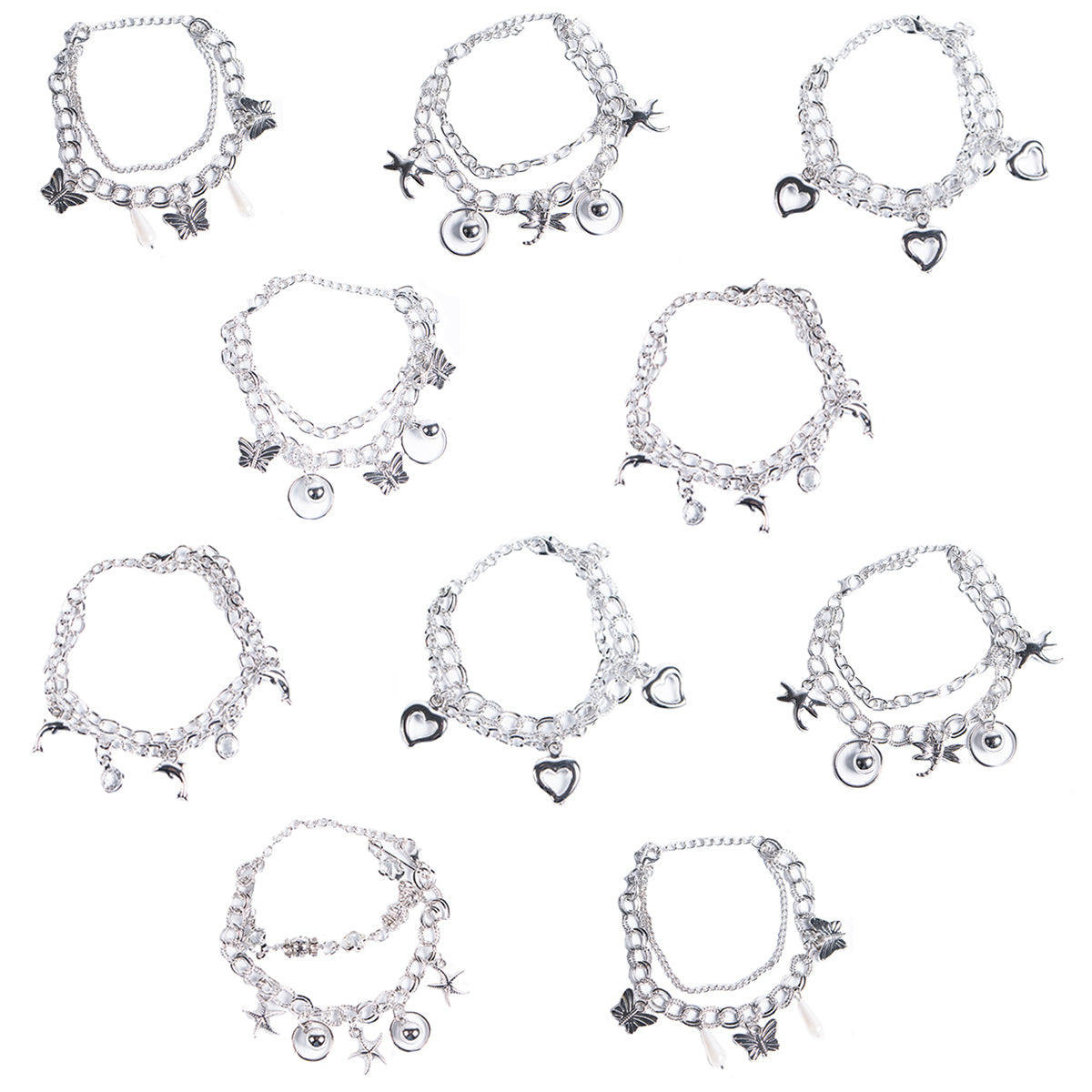 Contiene diez pulseras de fantasía de diferentes modelos en plateado.