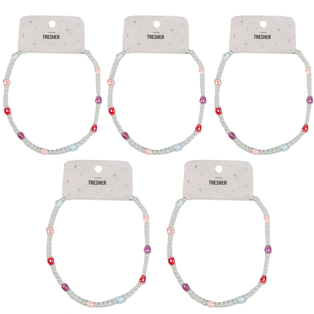 Contiene 5 collares de un mismo modelo de perlas con dijes.