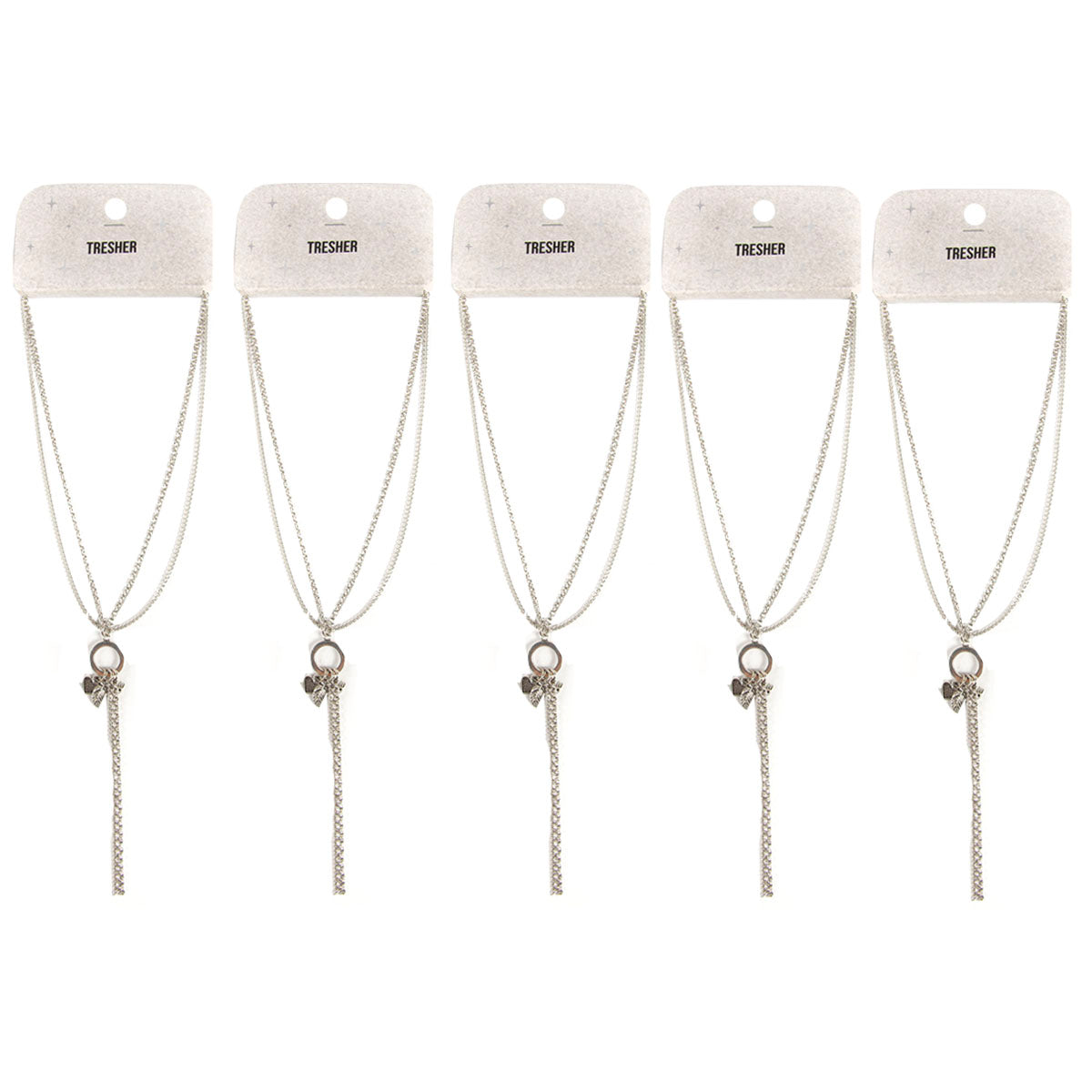 contiene cinco collares fantasía plateado de un mismo modelo