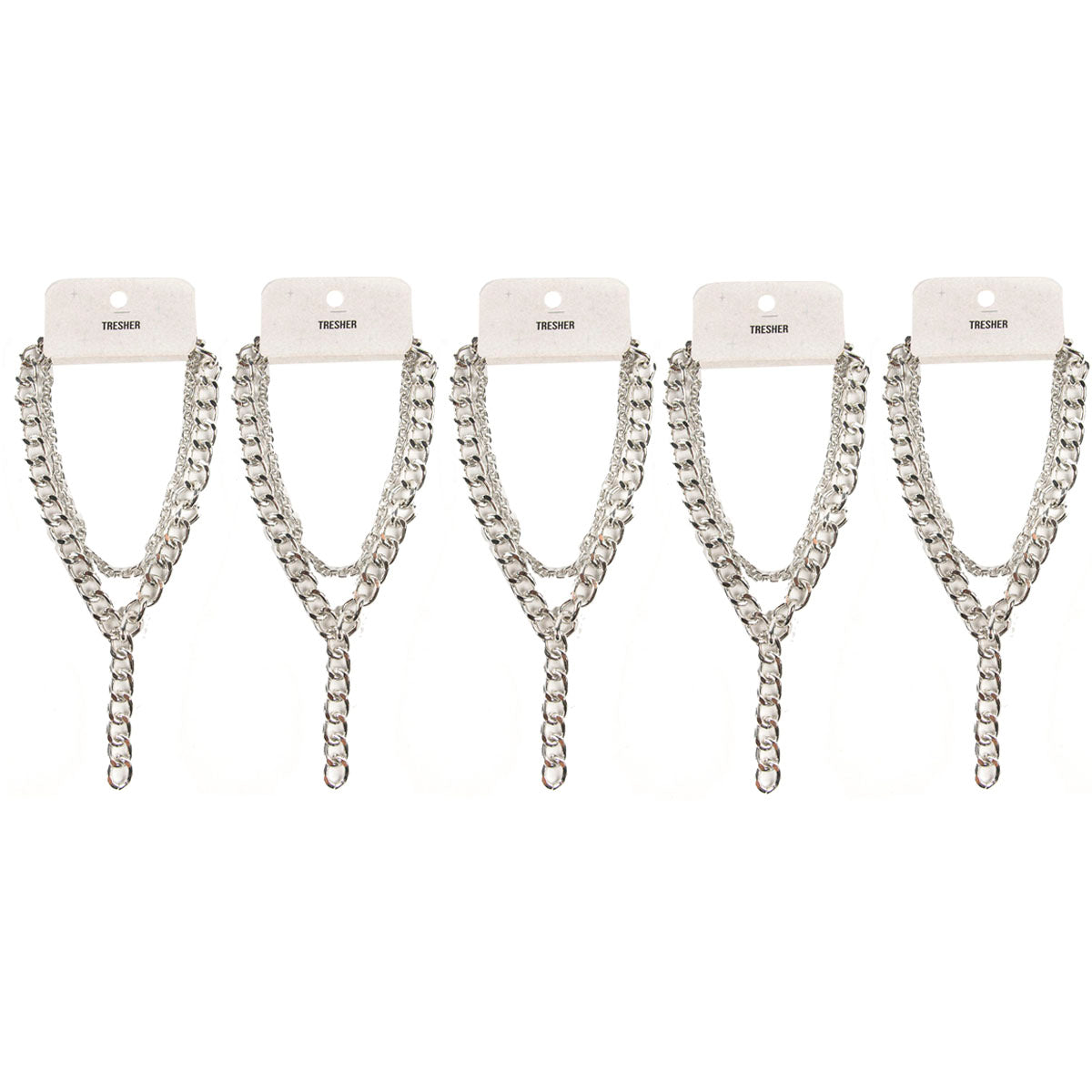 contiene cinco collares fantasía de un mismo modelo en plateado.