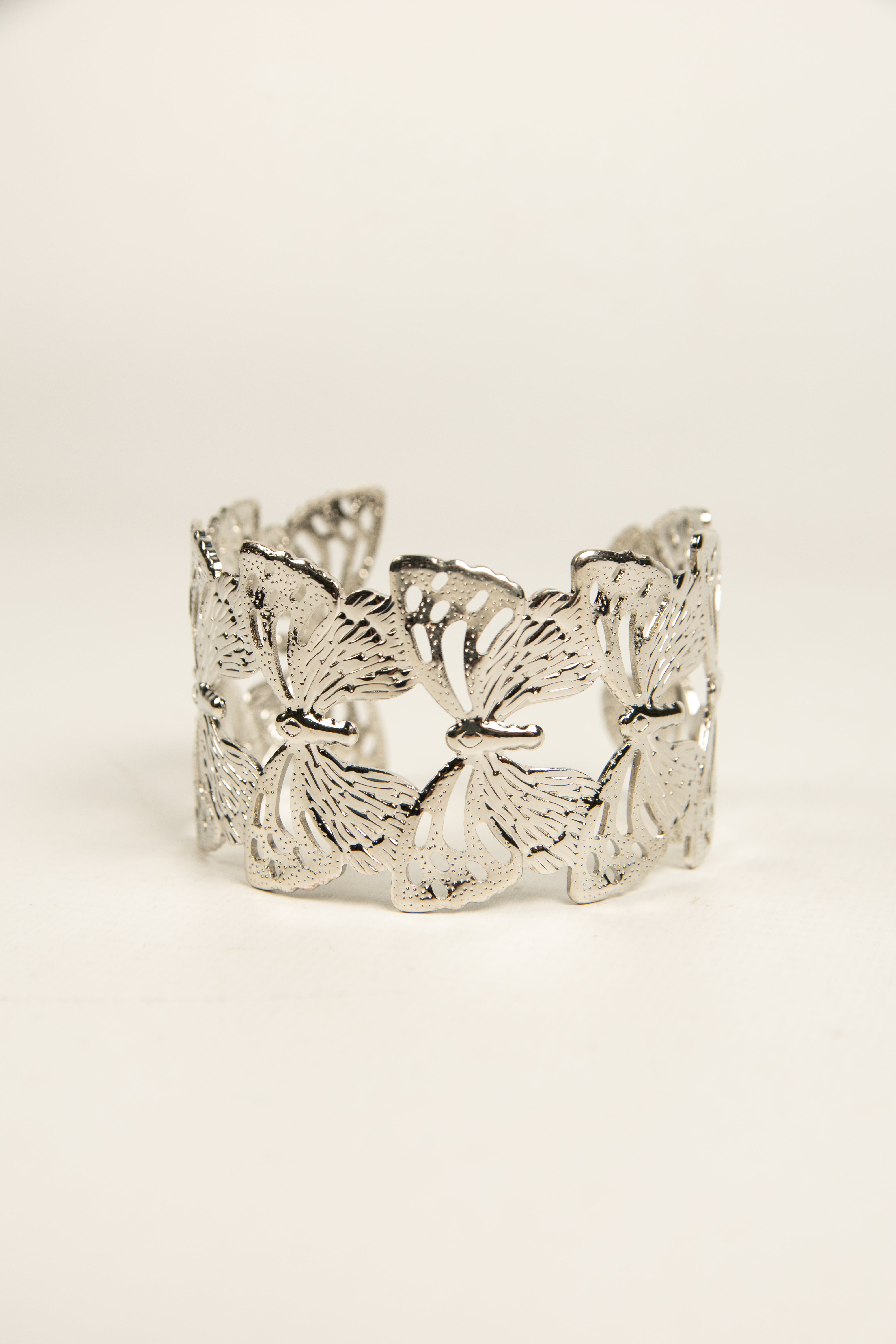 Contiene 5 pulsera esclavas de un mismo modelo en color plateado.