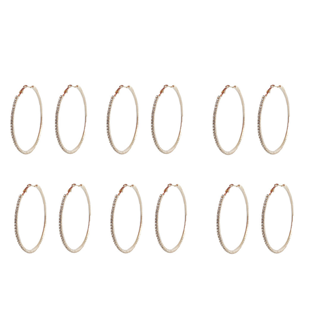 - Contiene: 6 aros argolla con strass mediano en color dorado