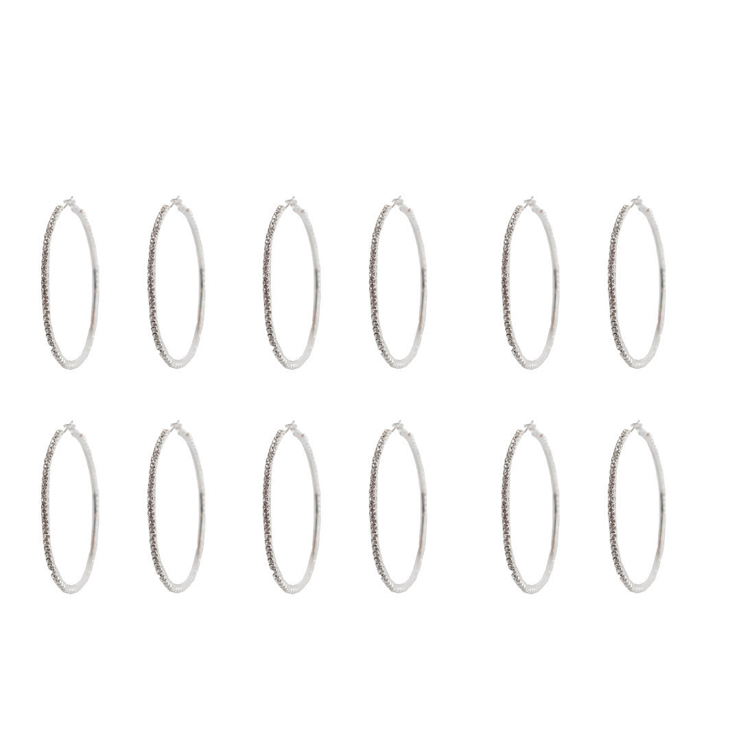- Contiene: 6 aros argolla con strass mediano en color plateado