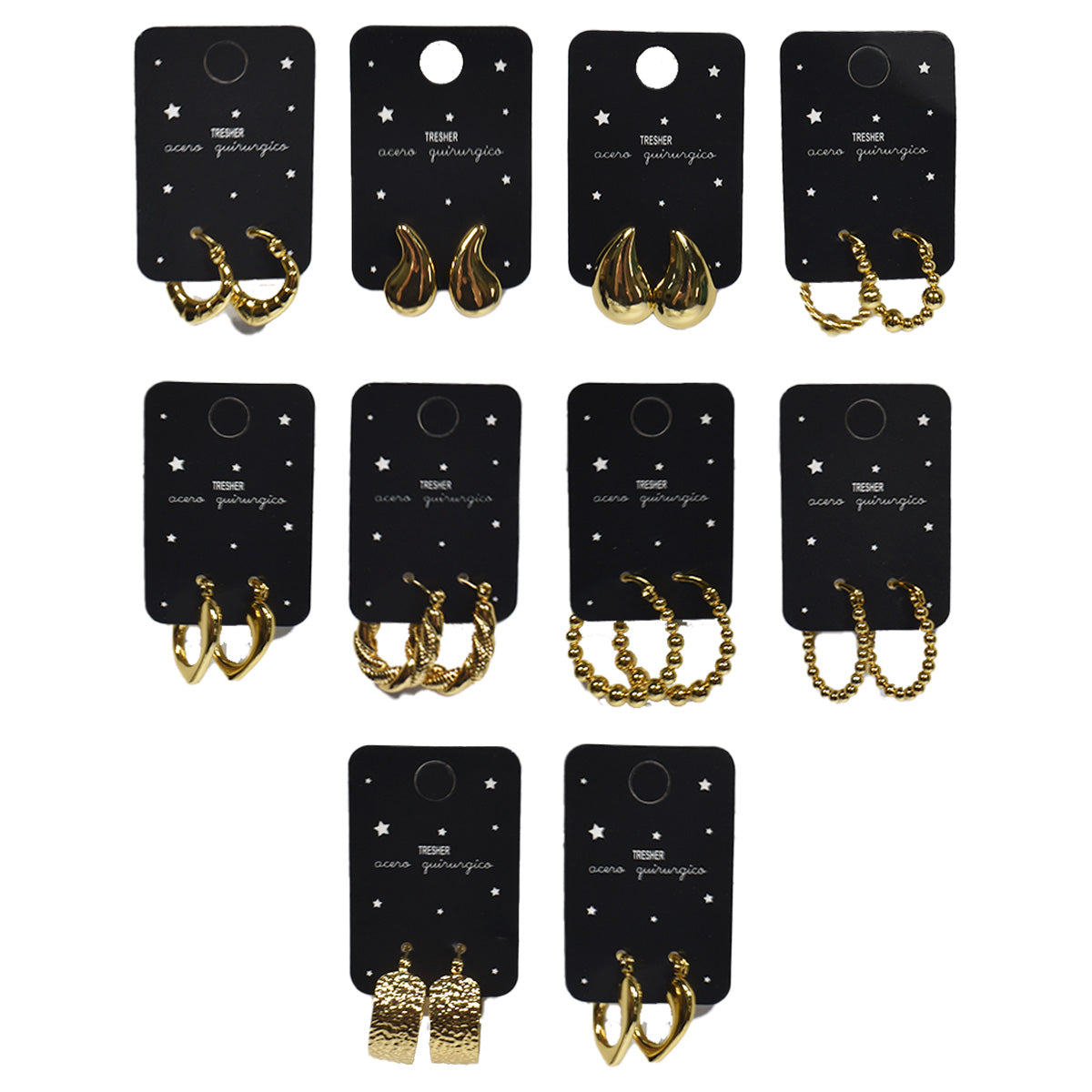 Contiene: 10 aros de acero quirúrgico dorados de diferentes modelos.