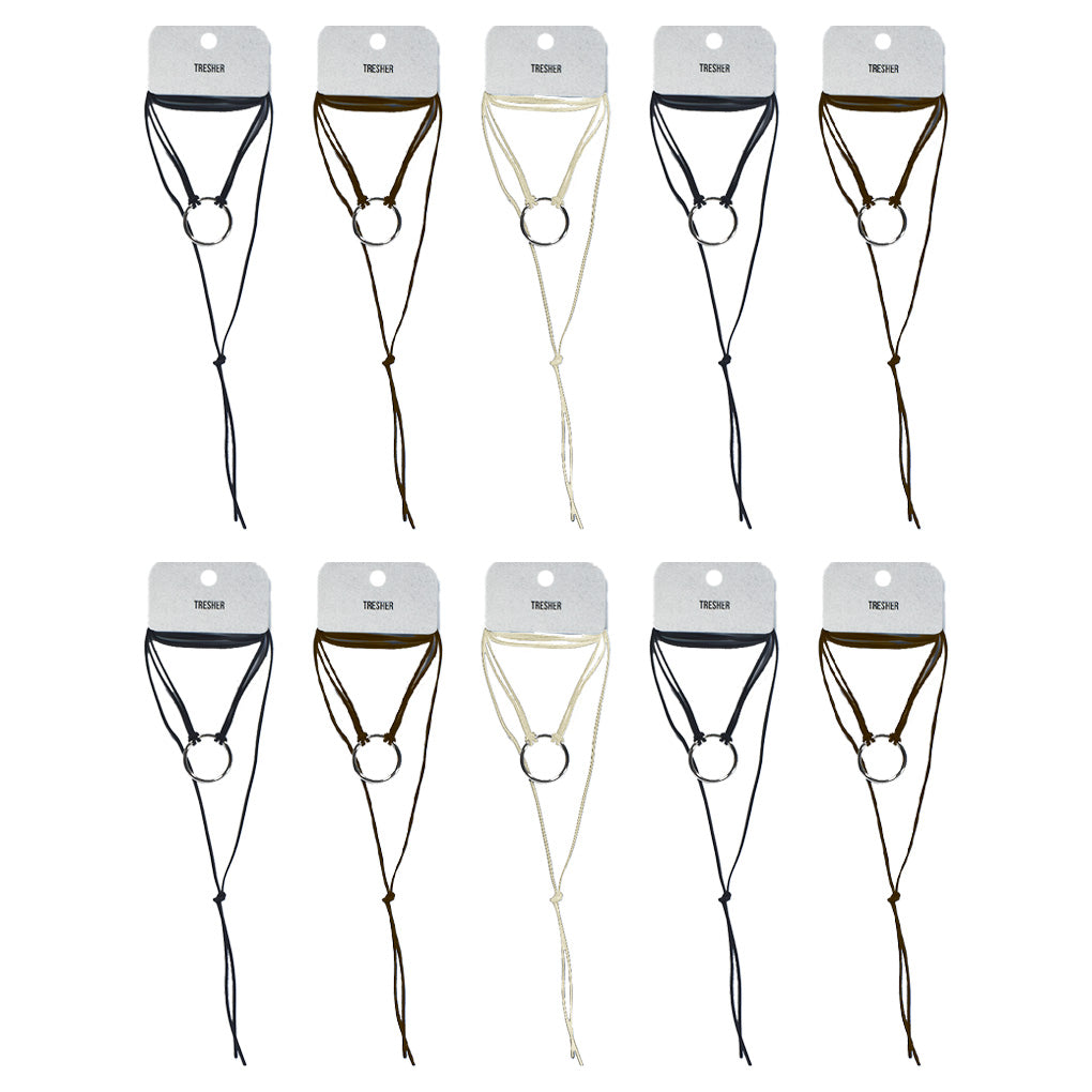 Contiene: 10 collares corbateros con argolla de diferentes colores.