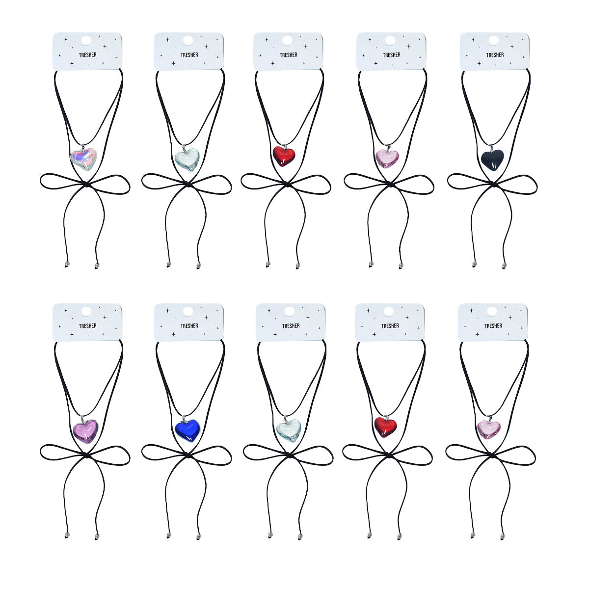 Contiene: 10 collares corbateros con dije de vidrio con forma de corazón grande. SE ENVIA EN NEGR,ROJO Y TRICOLOR.