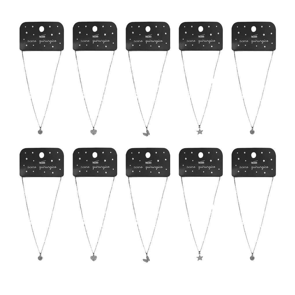 Contiene: 10 collares de acero quirúrgico con strass plateados de diferentes modelos