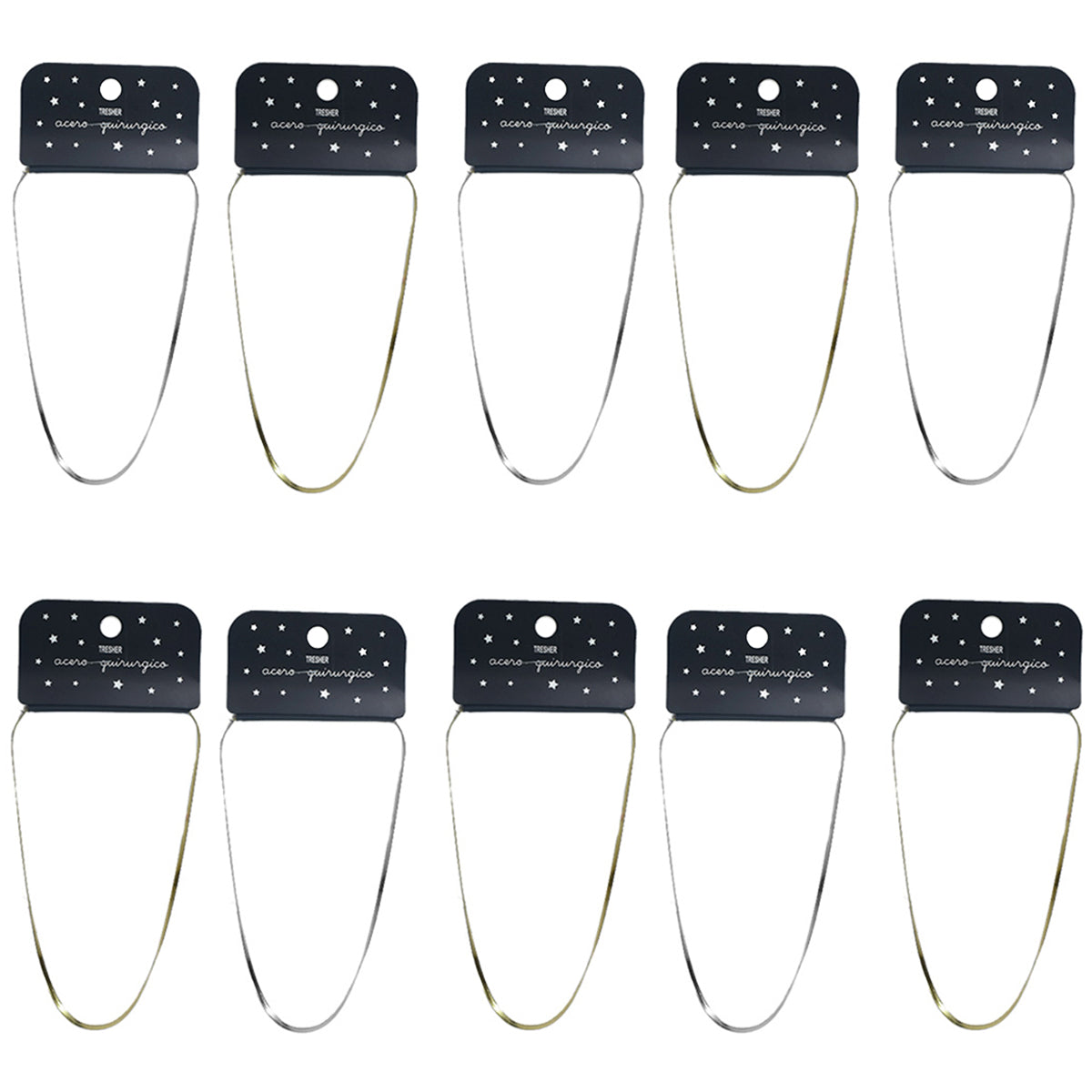 Contiene diez collares de acero quirúrgico de un mismo modelo en dorado y plateado.