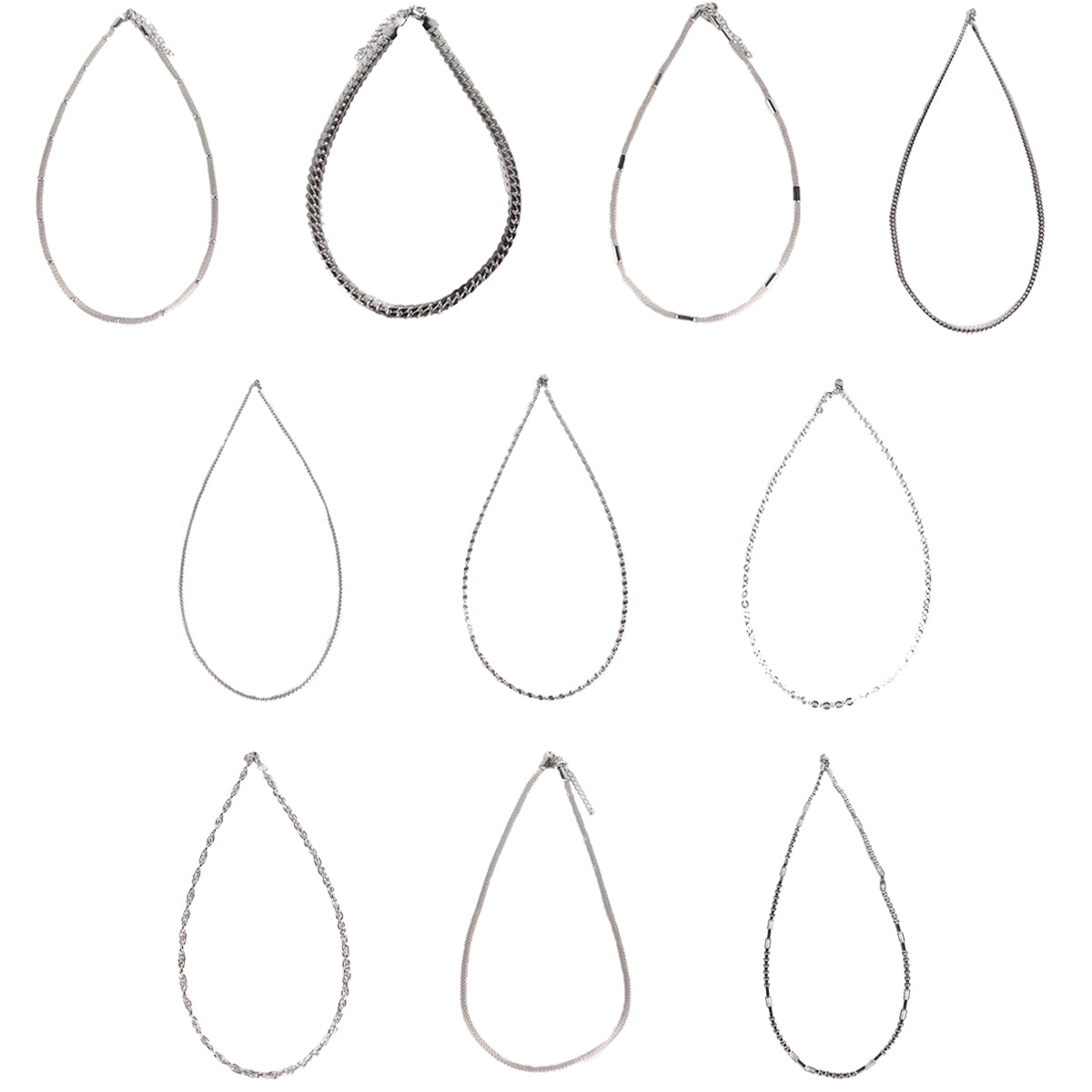 Contiene diez collares de hombre surtidos de acero quirúrgico de diferentes modelos.