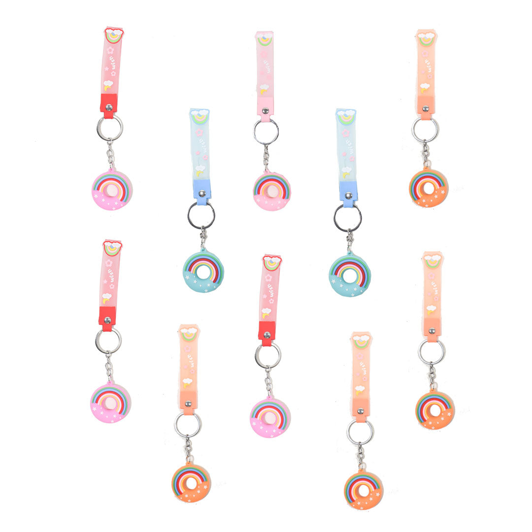 Contiene diez llaveros de un mismo modelo colores diferentes.