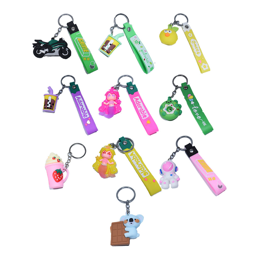 Contiene: 10 llaveros de goma, diferentes modelos.