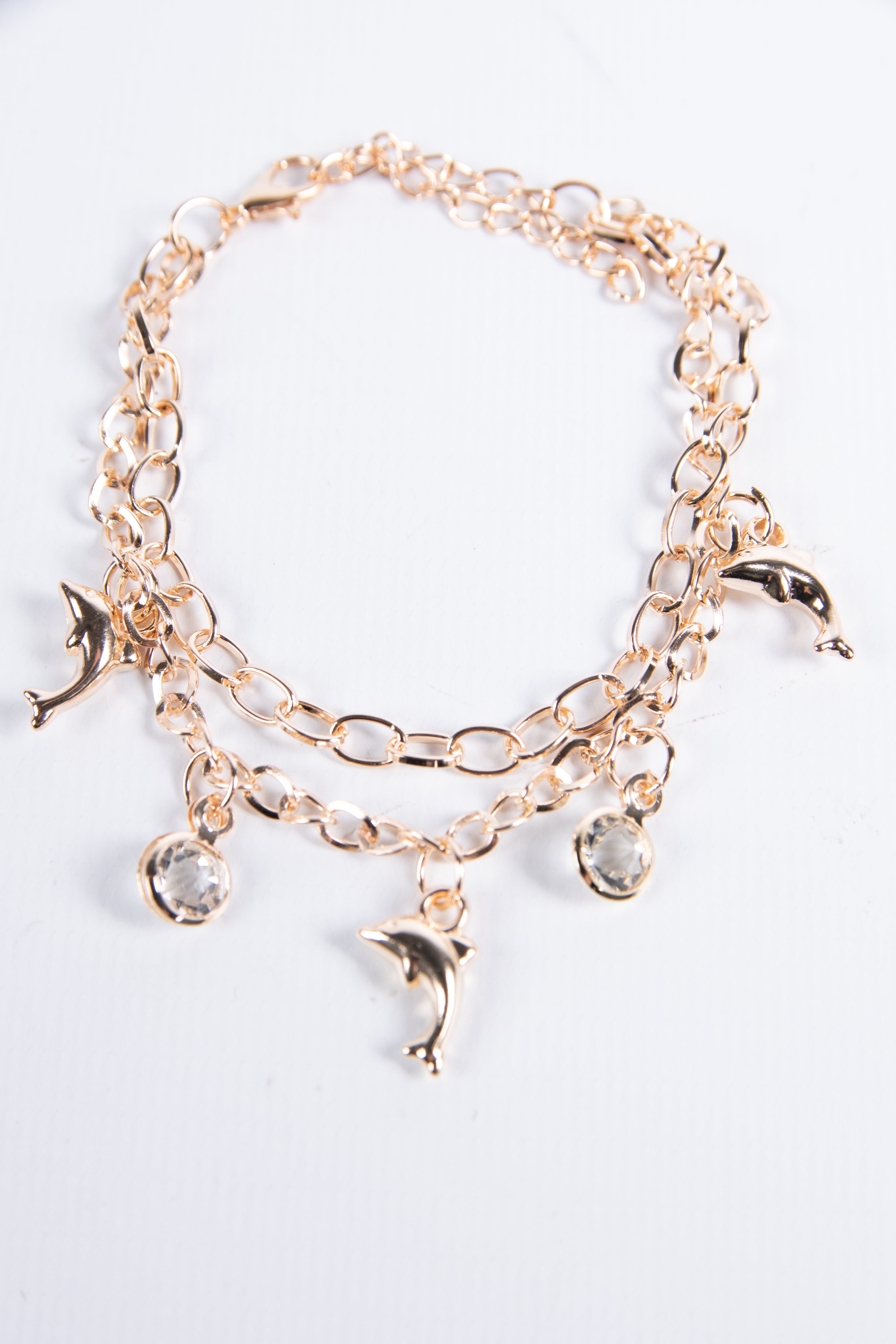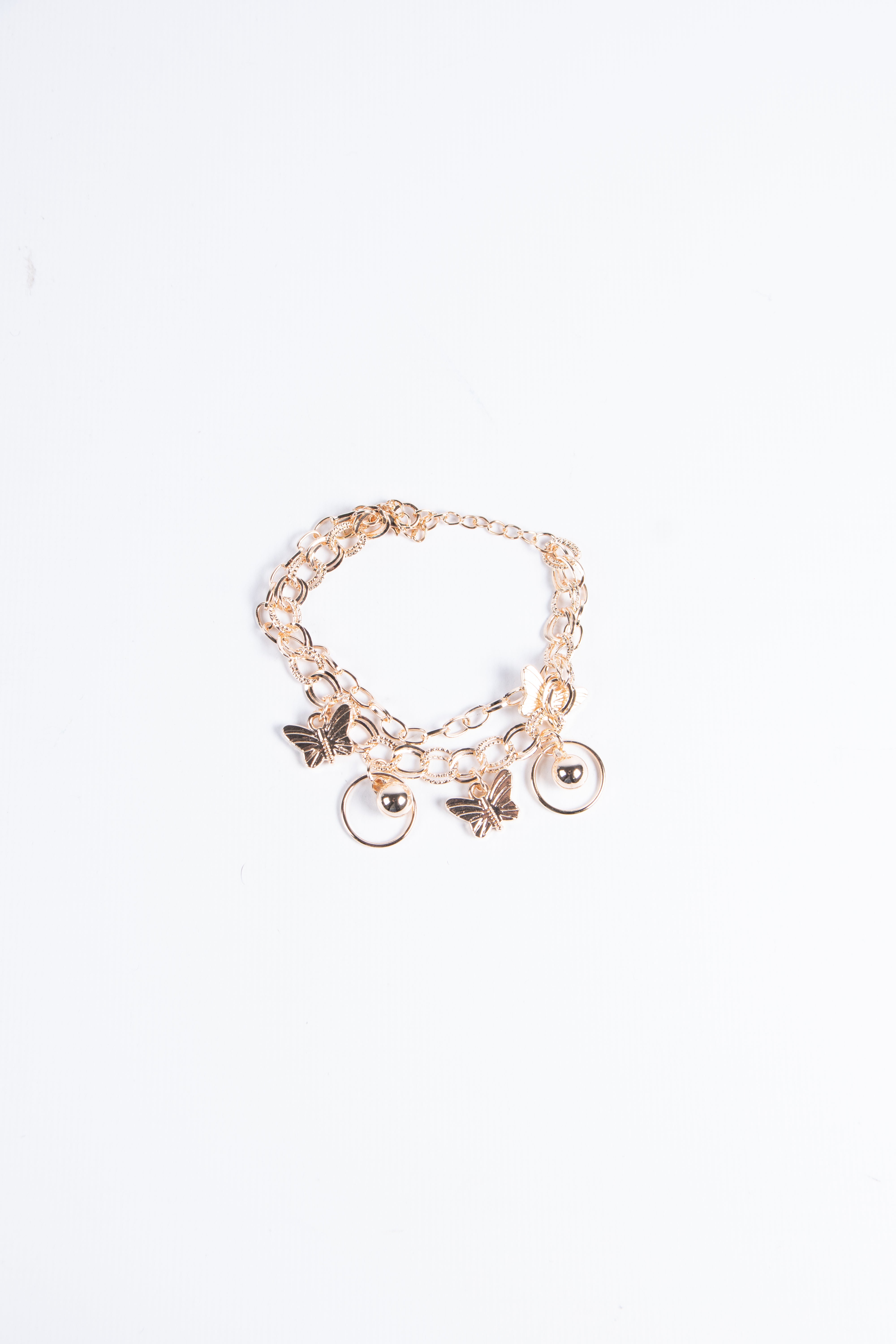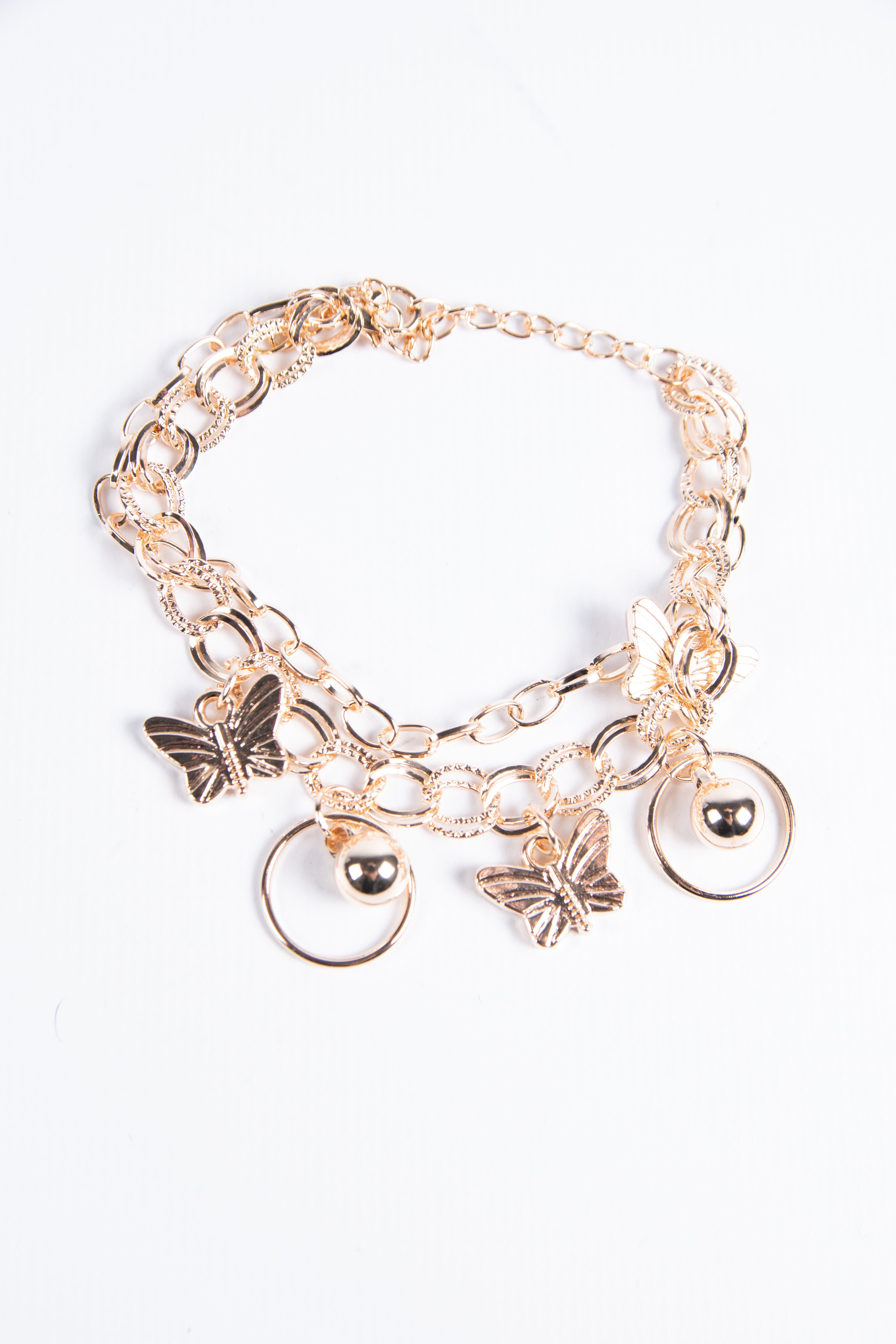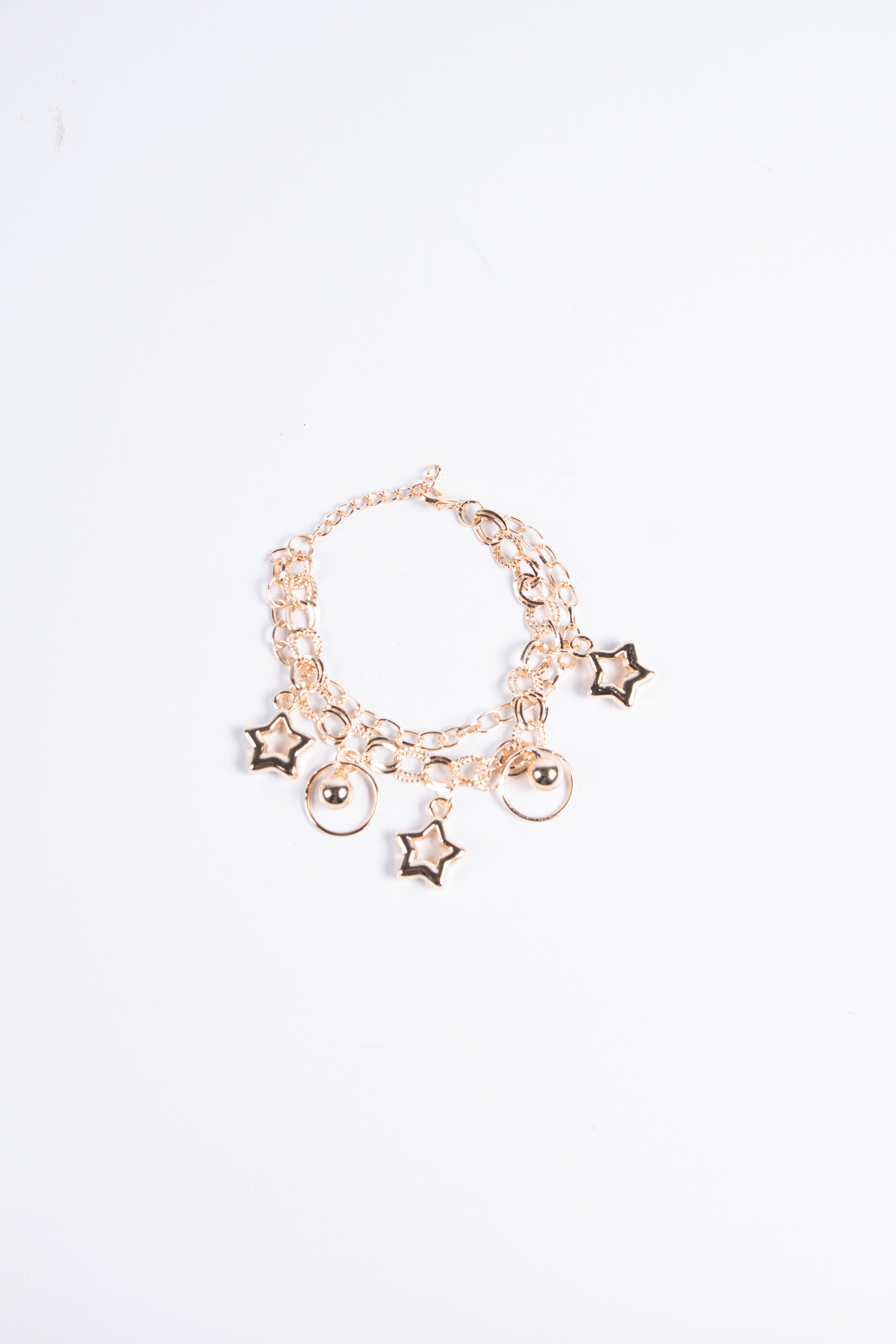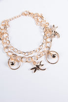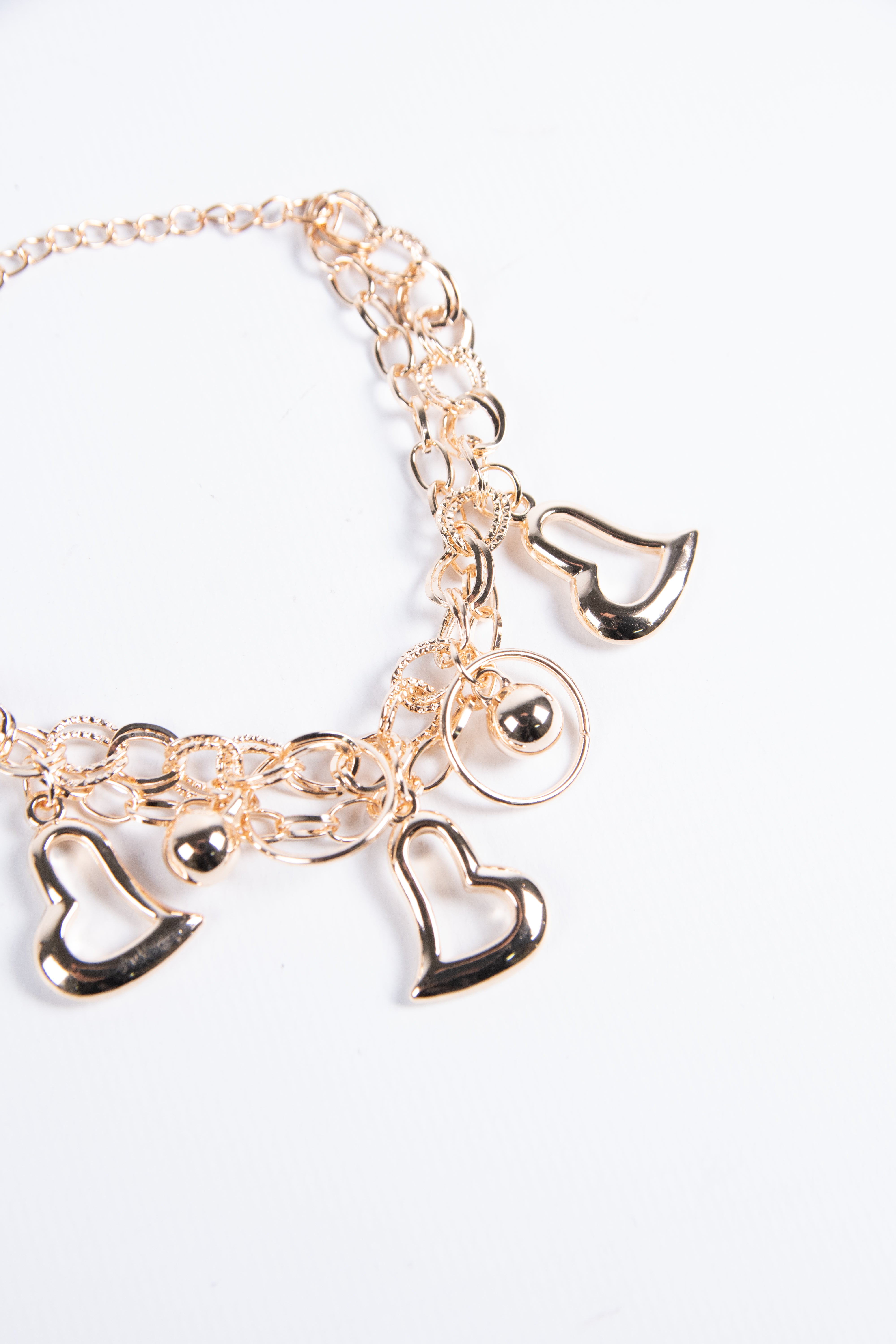 Contiene diez pulseras de fantasía de diferentes modelos en dorado.