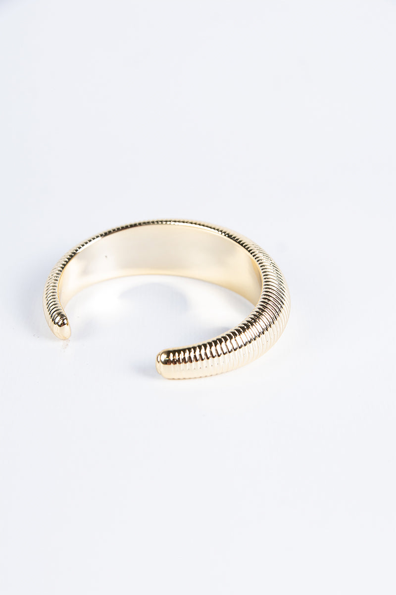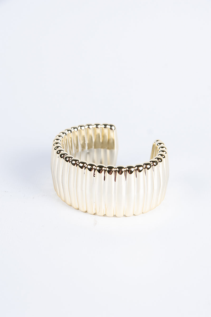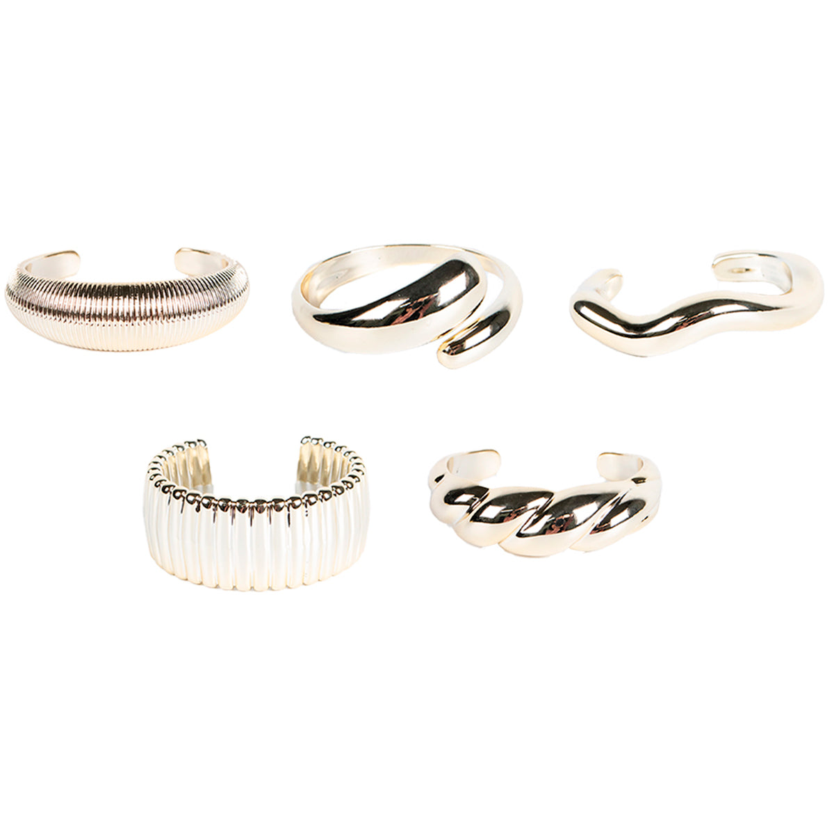 Contiene cinco brazaletes de diferentes modelos en dorado.
