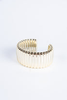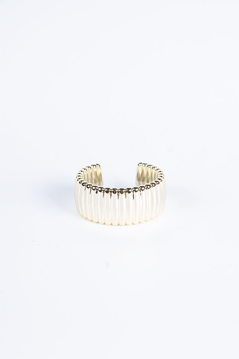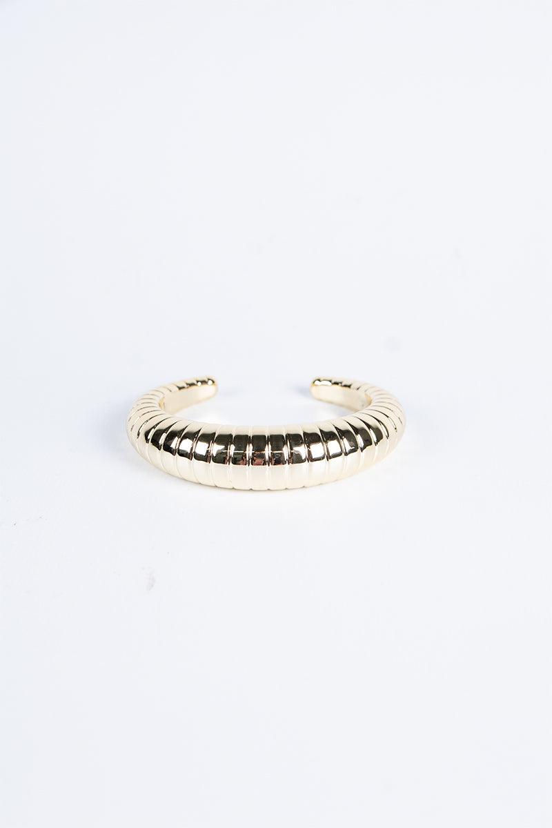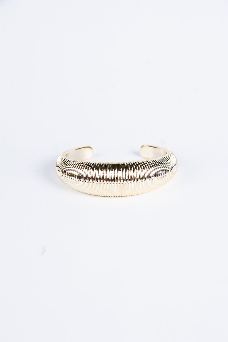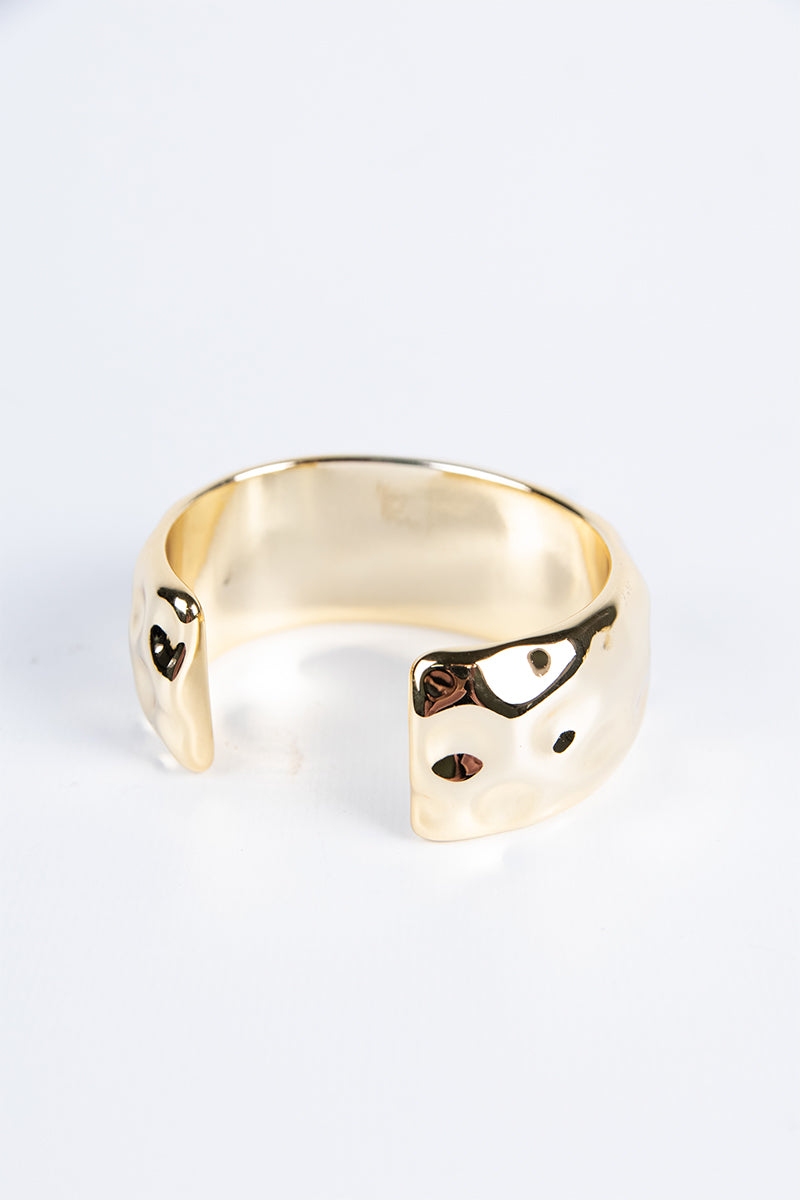 Contiene cinco brazaletes de diferentes modelos en dorado.