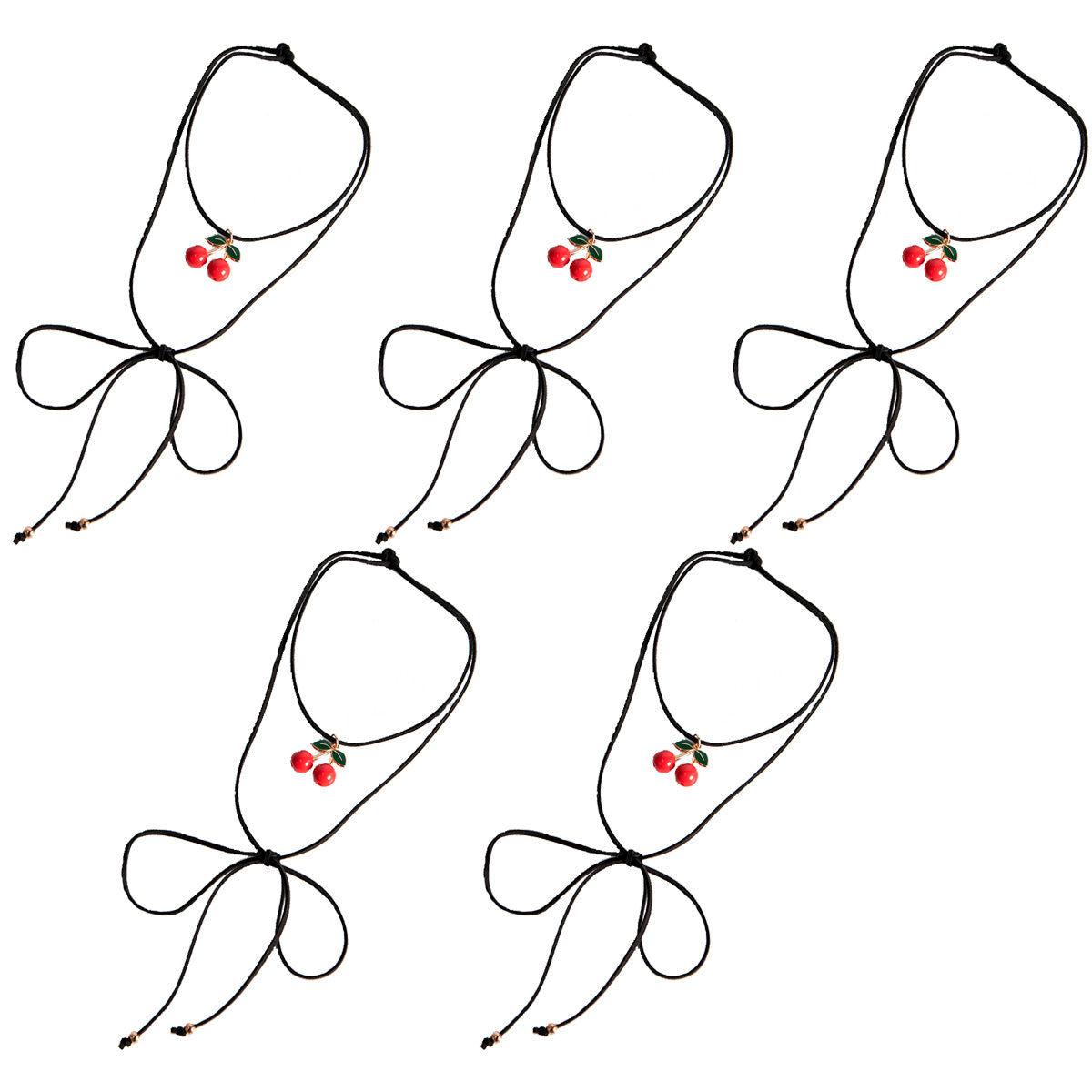 Contiene cinco collares corbatero con dije cherry de un mismo modelo.