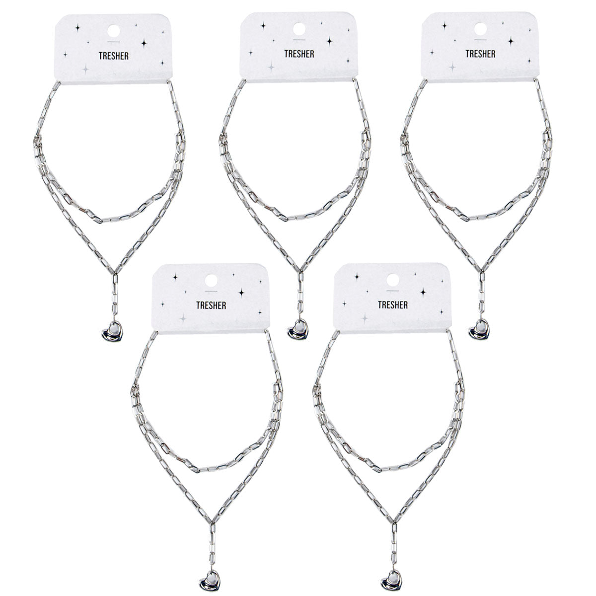 Contiene 5 collares de Fantasía de un mismo modelo en color plateado.