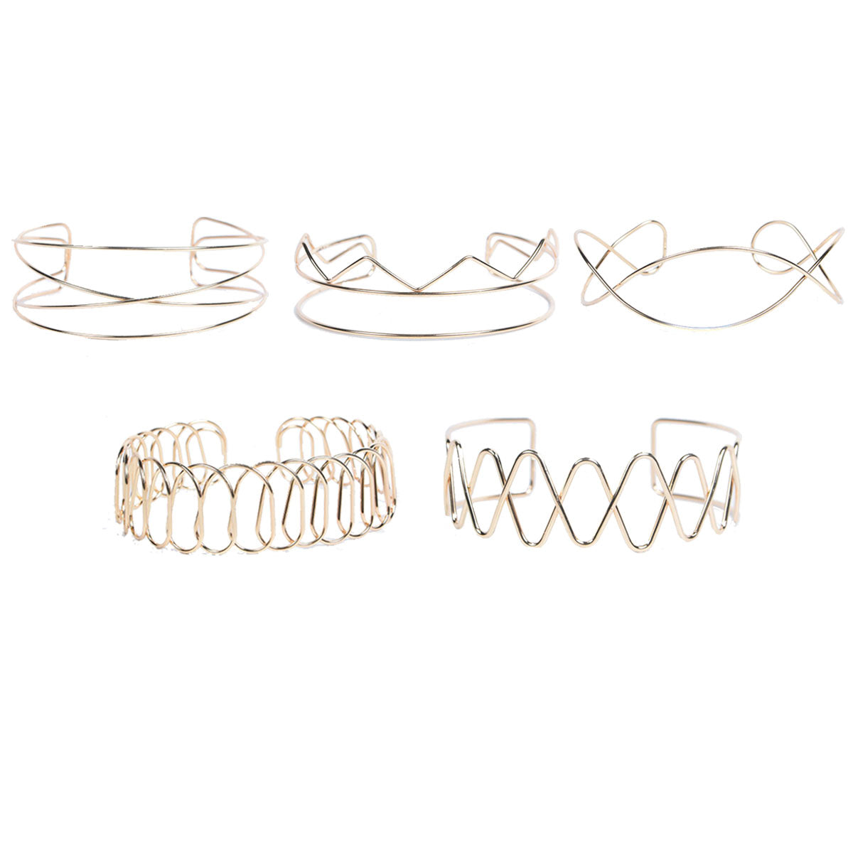 Contiene 5 collares rígidos dorados de modelos surtidos.