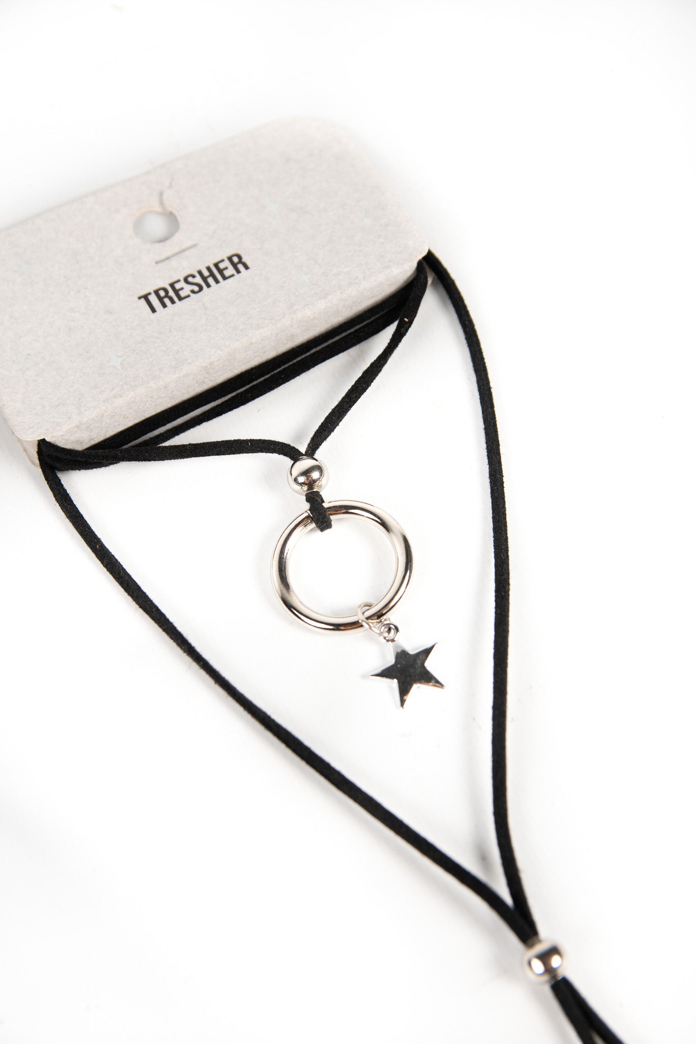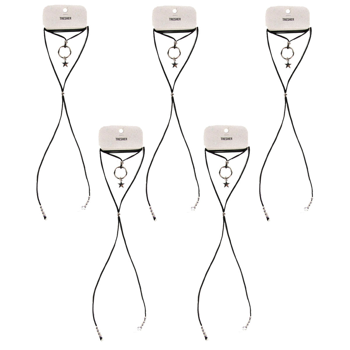 contiene cinco corbatines de un mismo modelo en color negro con dijes plateado