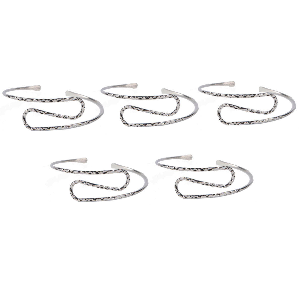 Contiene 5 pulseras esclavas de un mismo modelo plateadas.