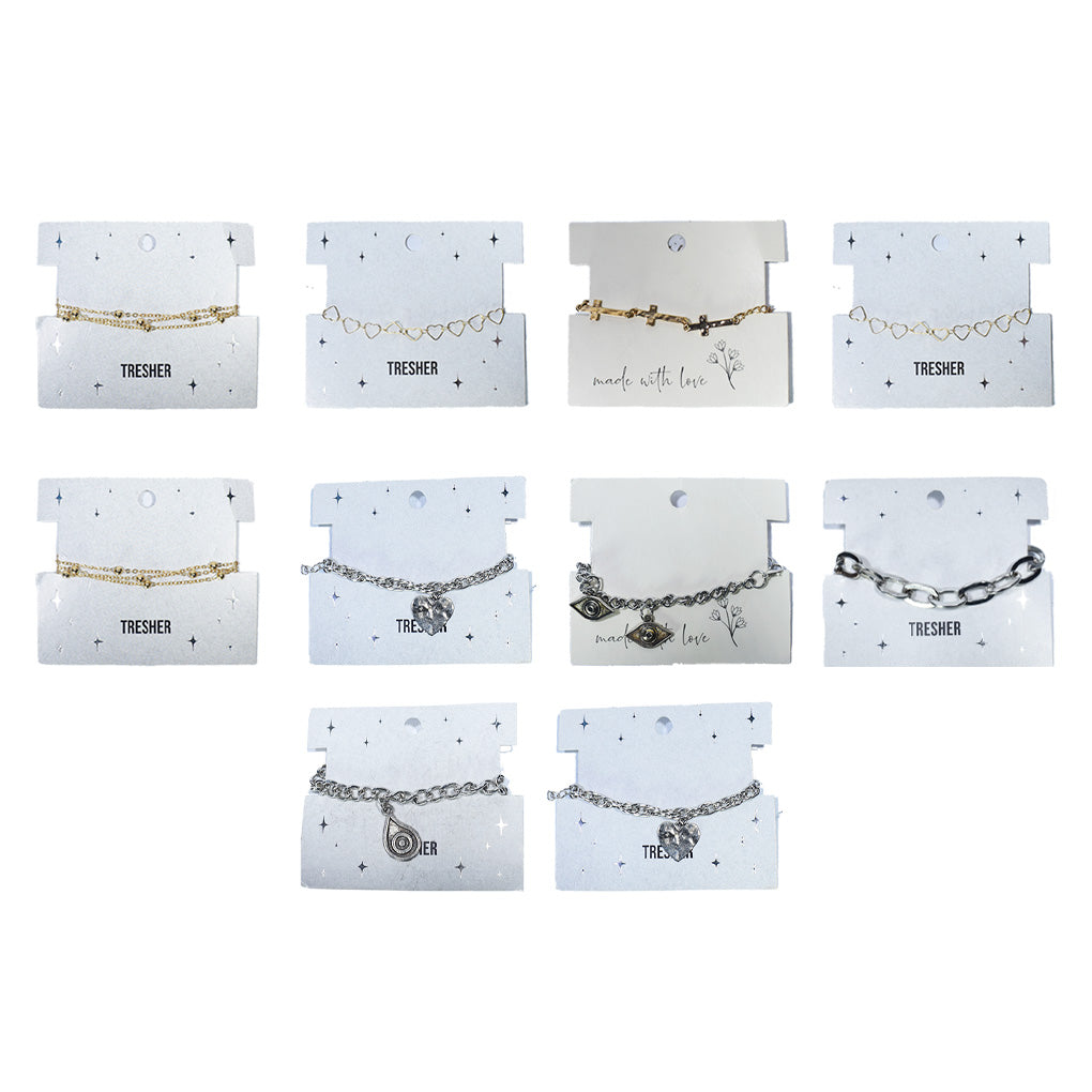 Contiene: 10 pulseras mixtas (doradas y plateadas), diferentes modelos