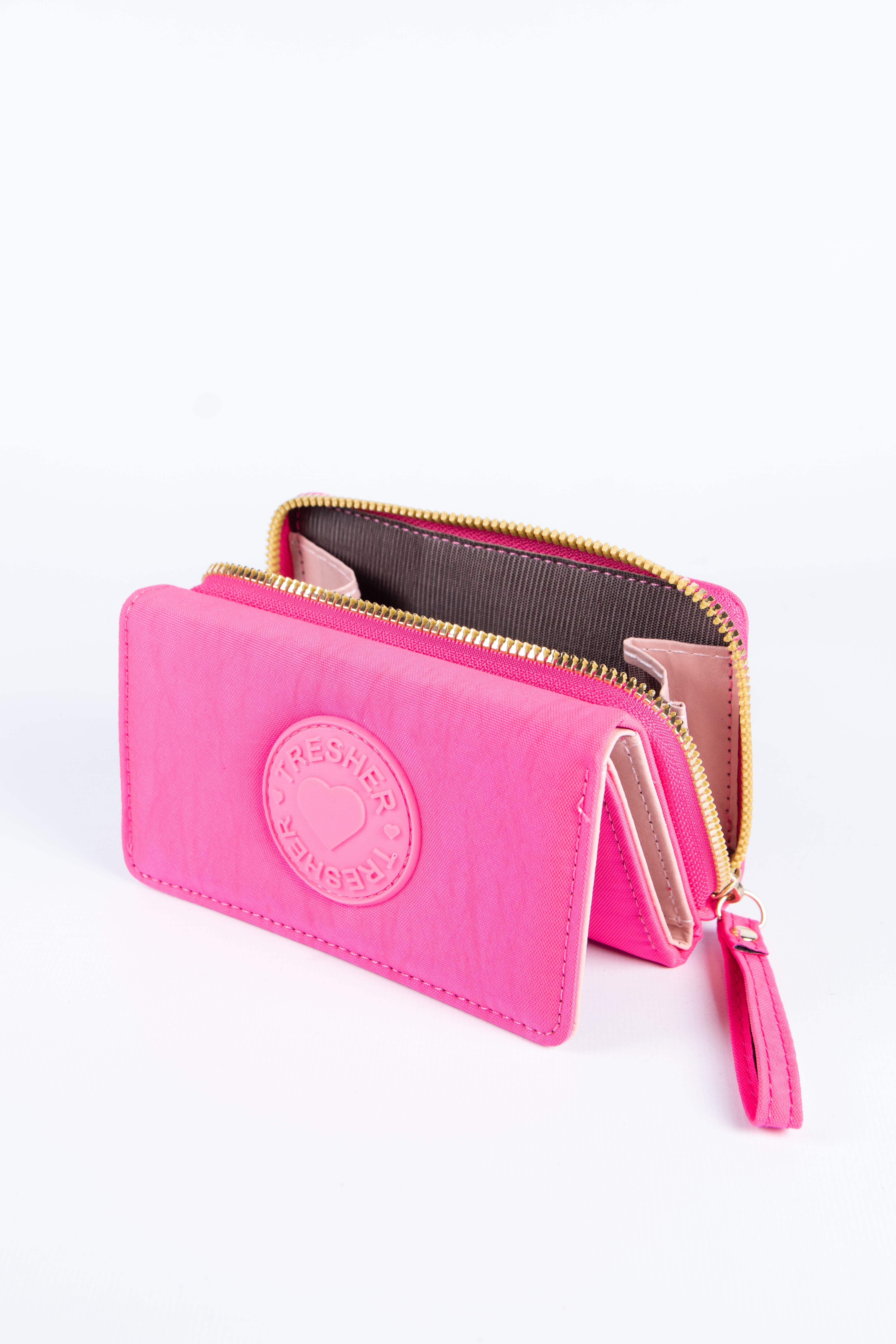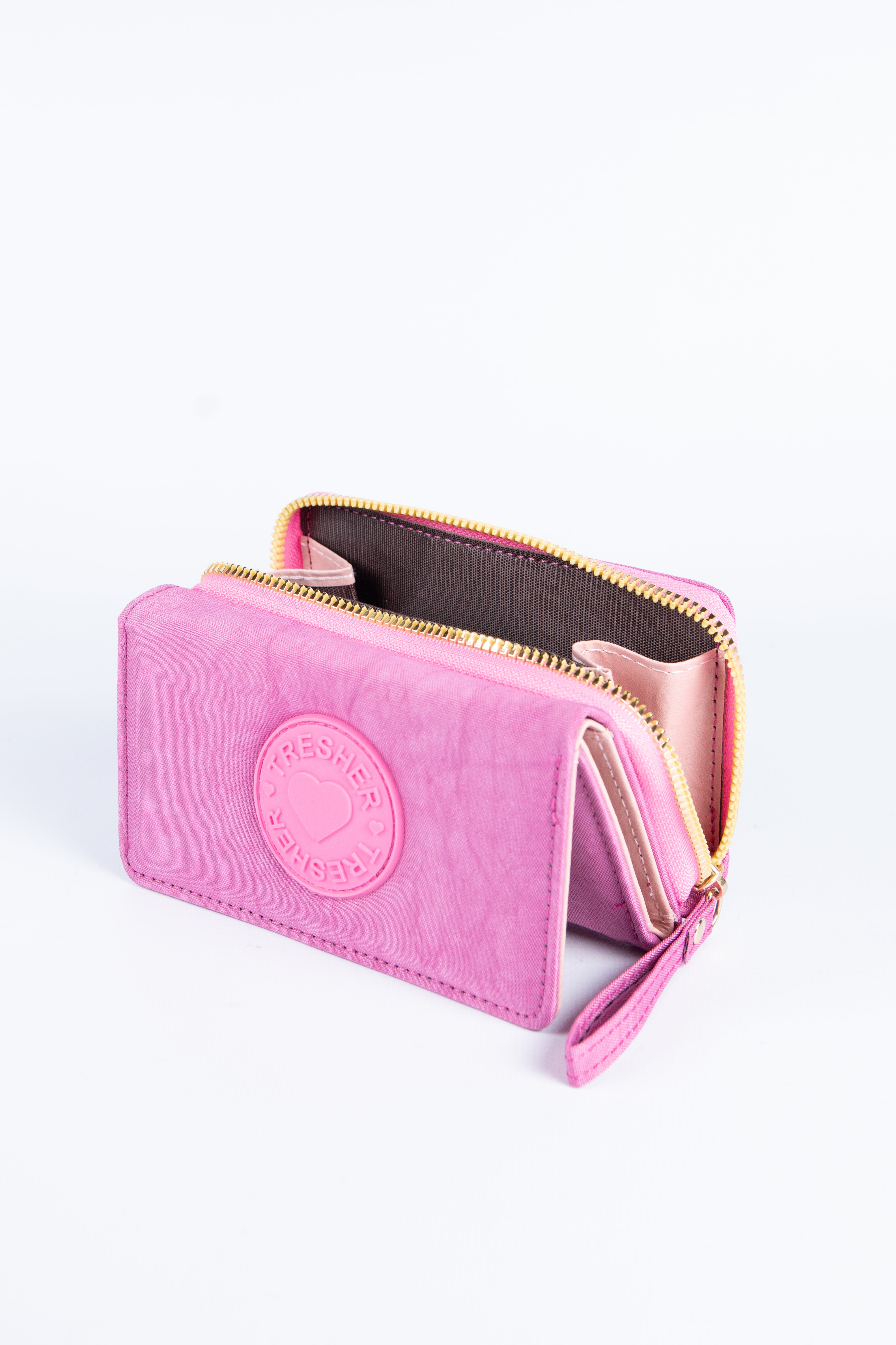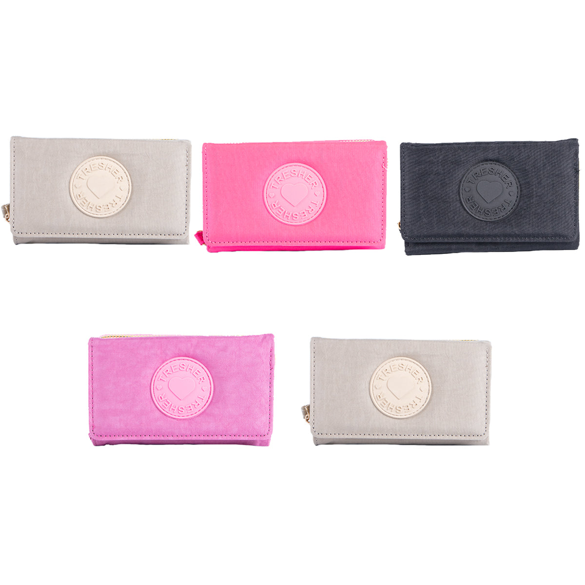 Contiene cinco billeteras de un mismo modelo en diferentes colores.
