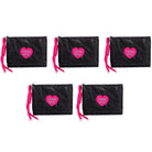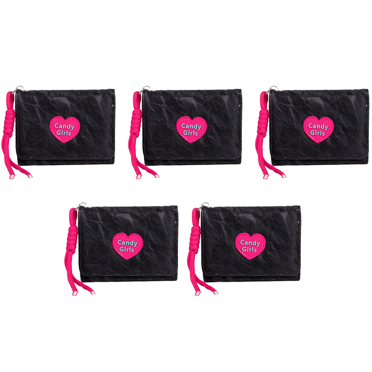 Contiene cinco billeteras de un mismo modelo en color negro.